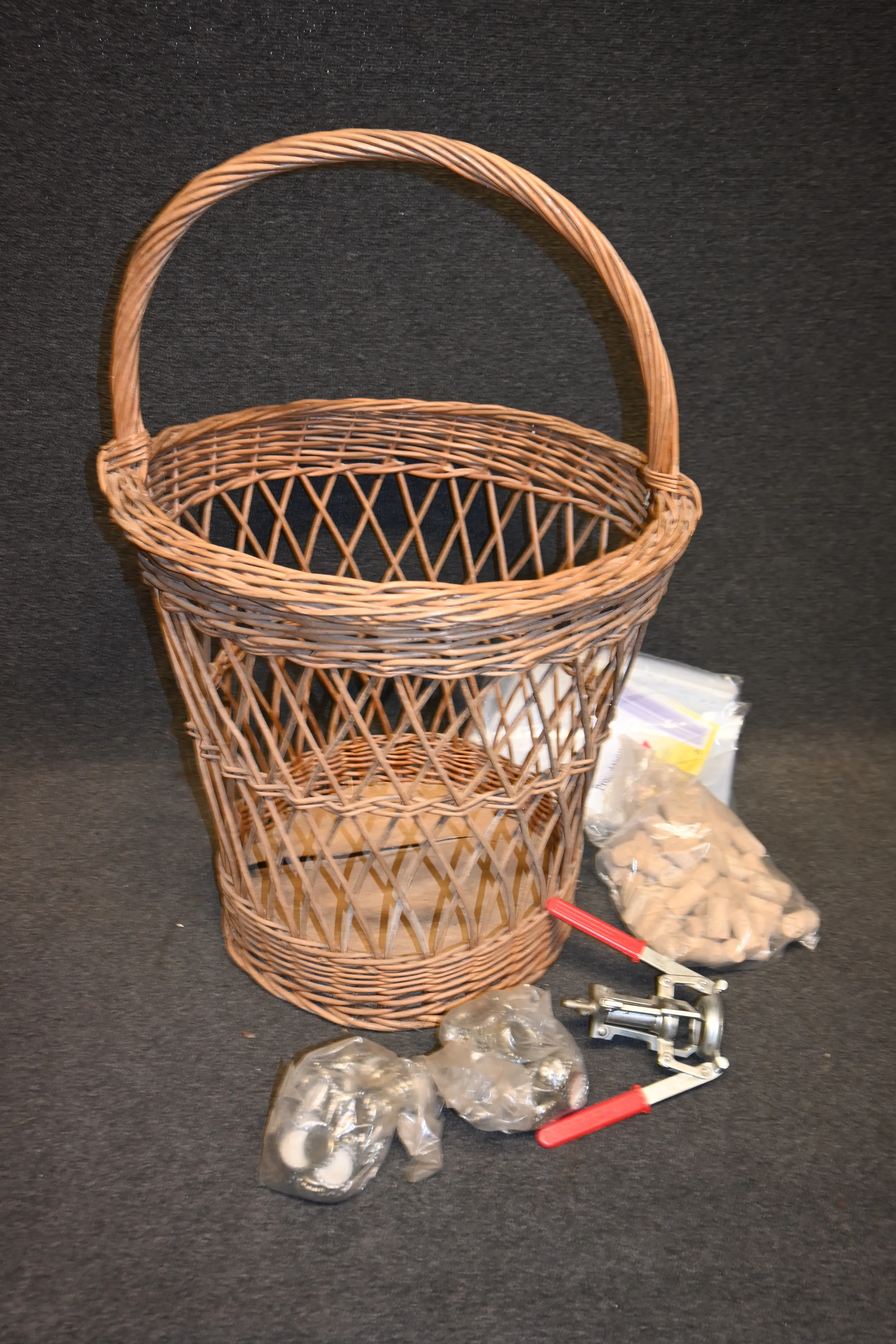 Korg (sliatge) H.48cm D.47cm + manuell korkapparat + kork & kapsyler