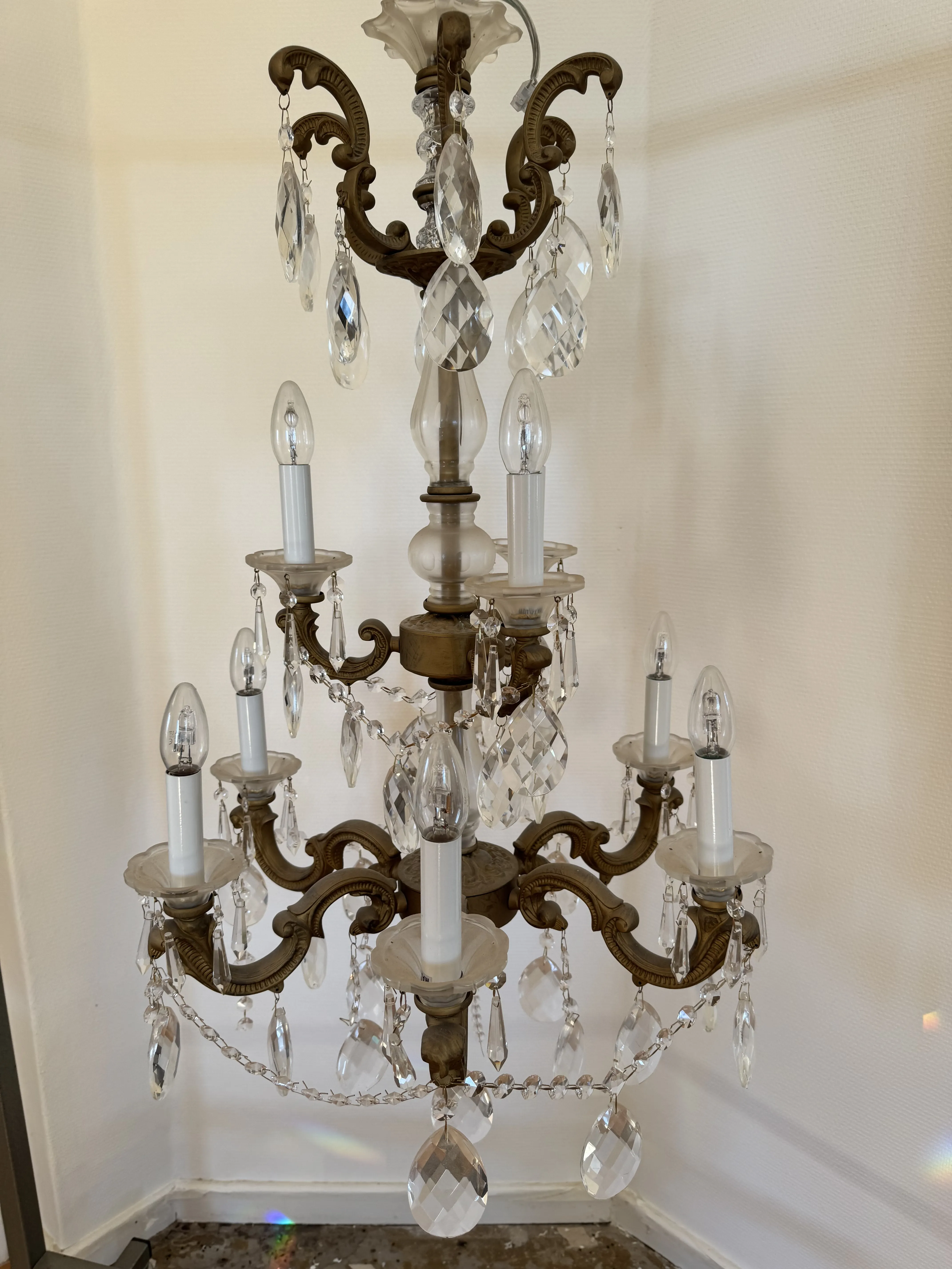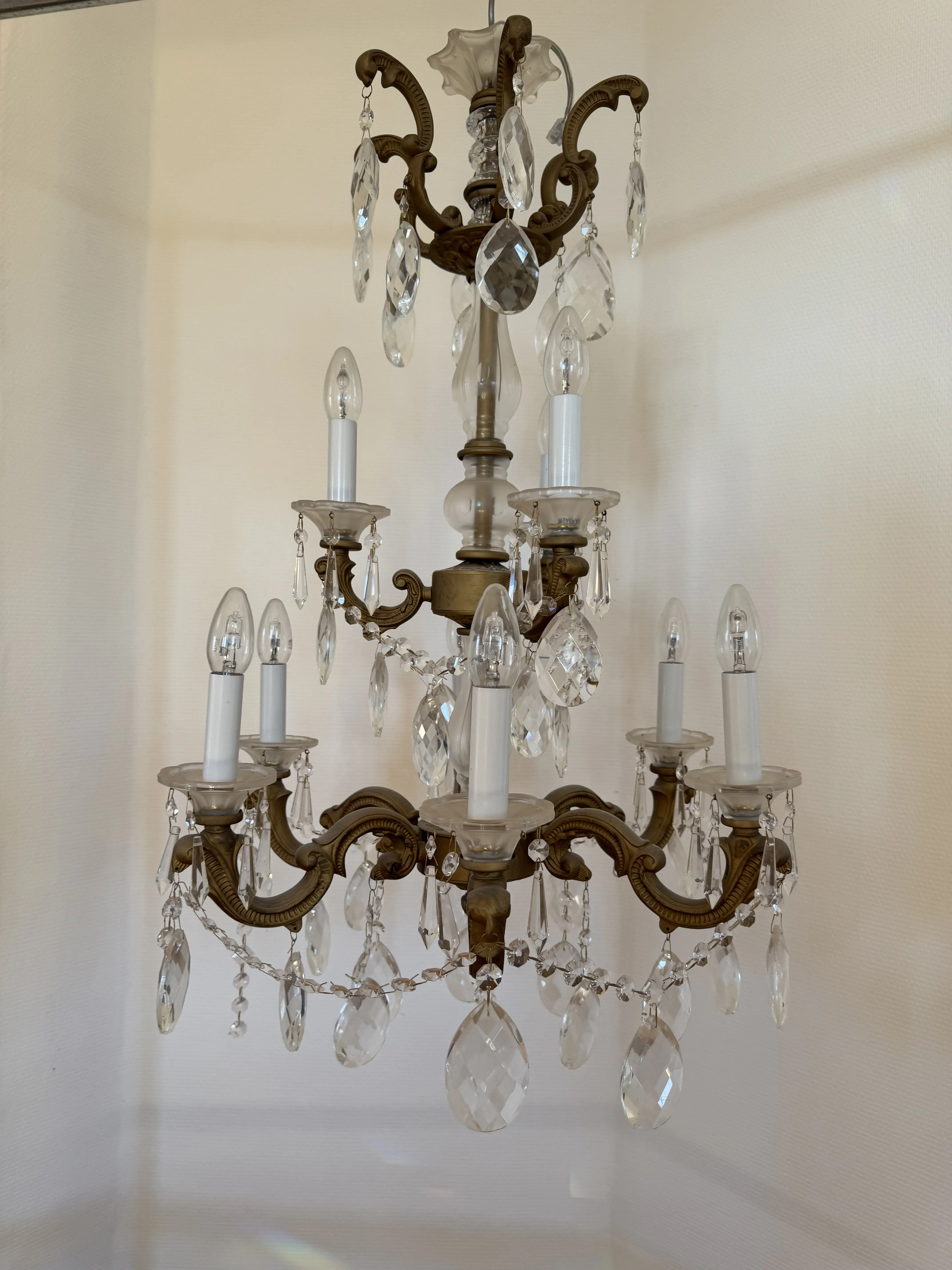 475. Kristallkrona i gjutgods H.90cm D.55cm