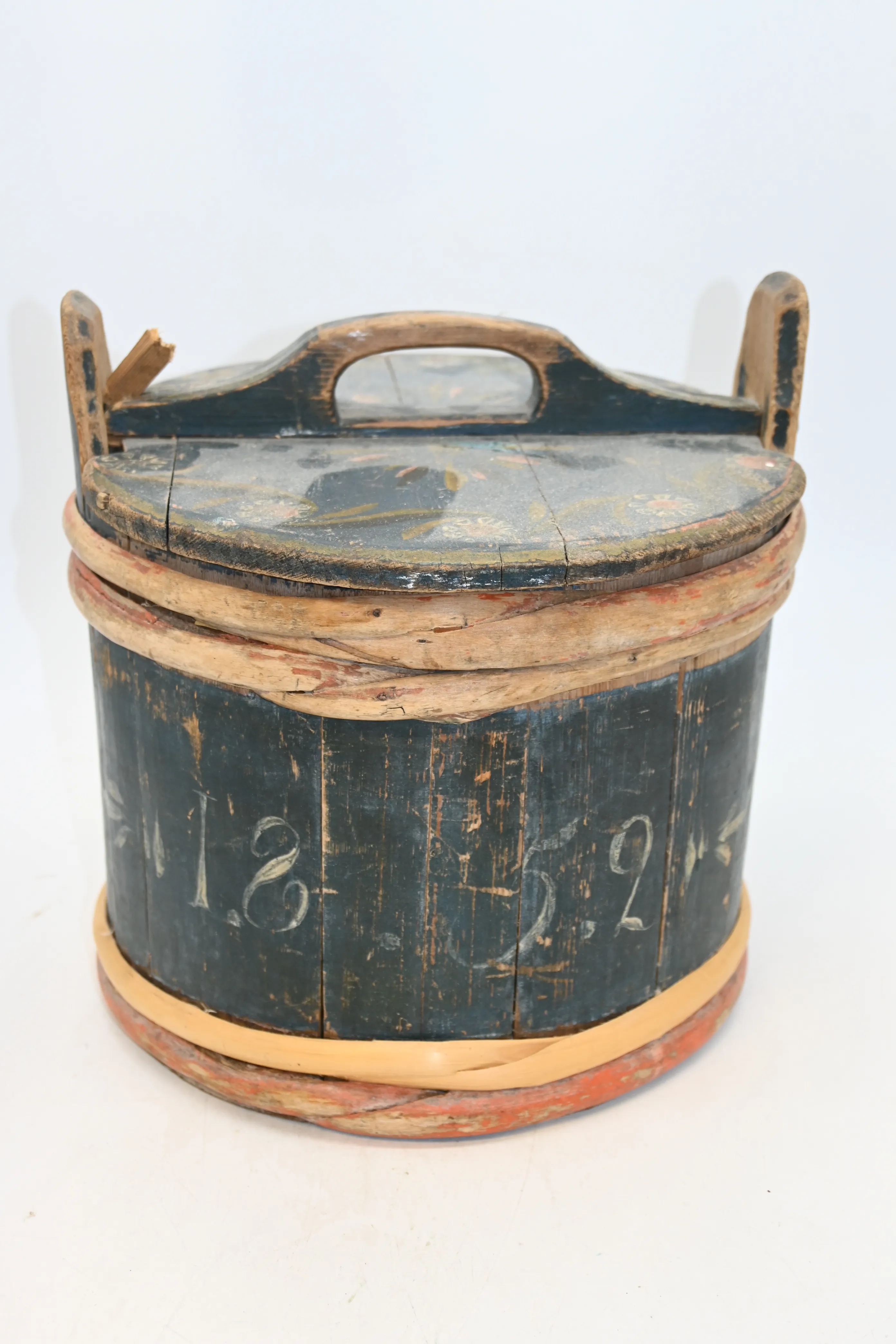 13. Laggkärl med målning dat 1852 H.24cm D.23cm