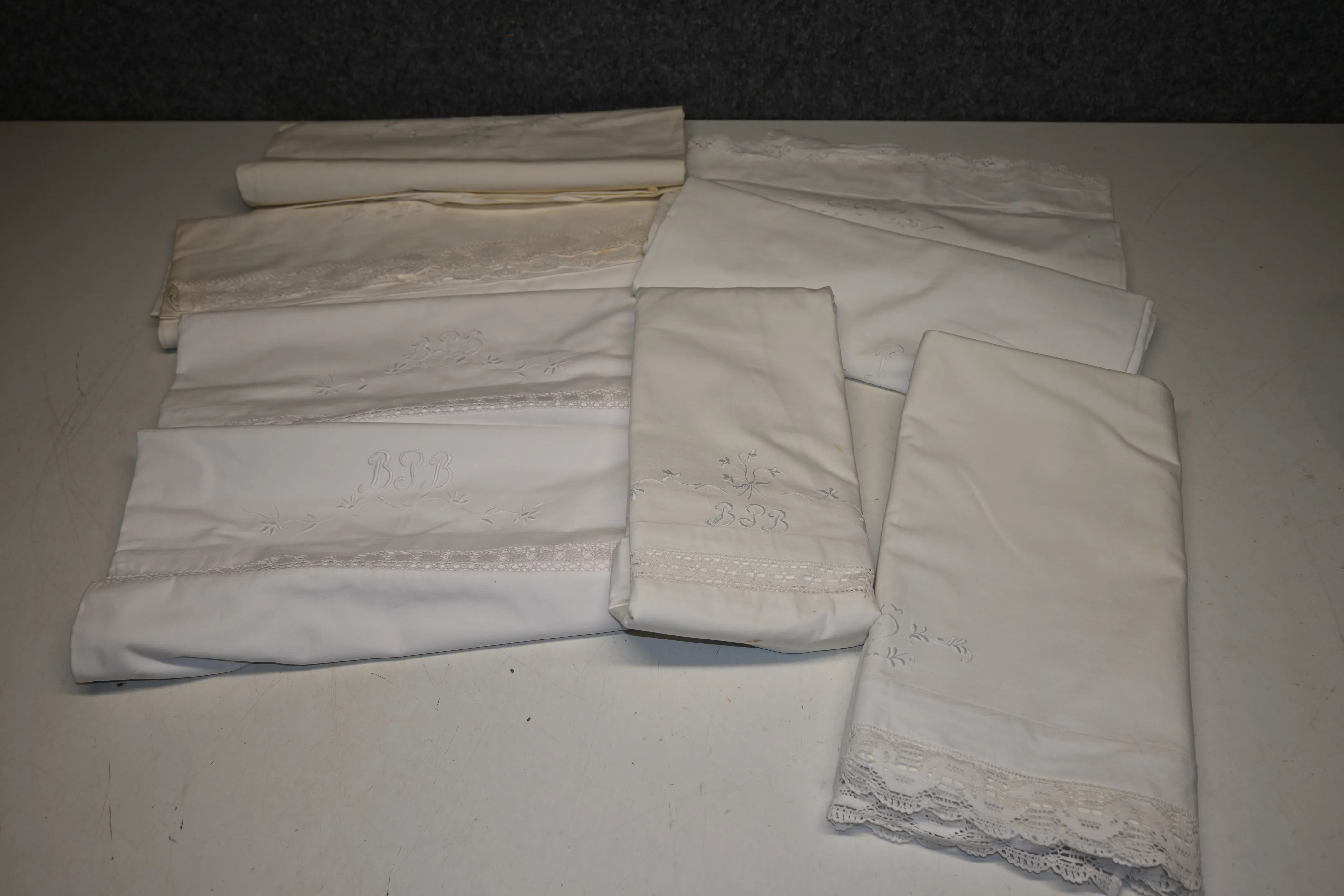 Lakan med broderi & spets 8st (missfärgning, ngn fläck kan förekomma)