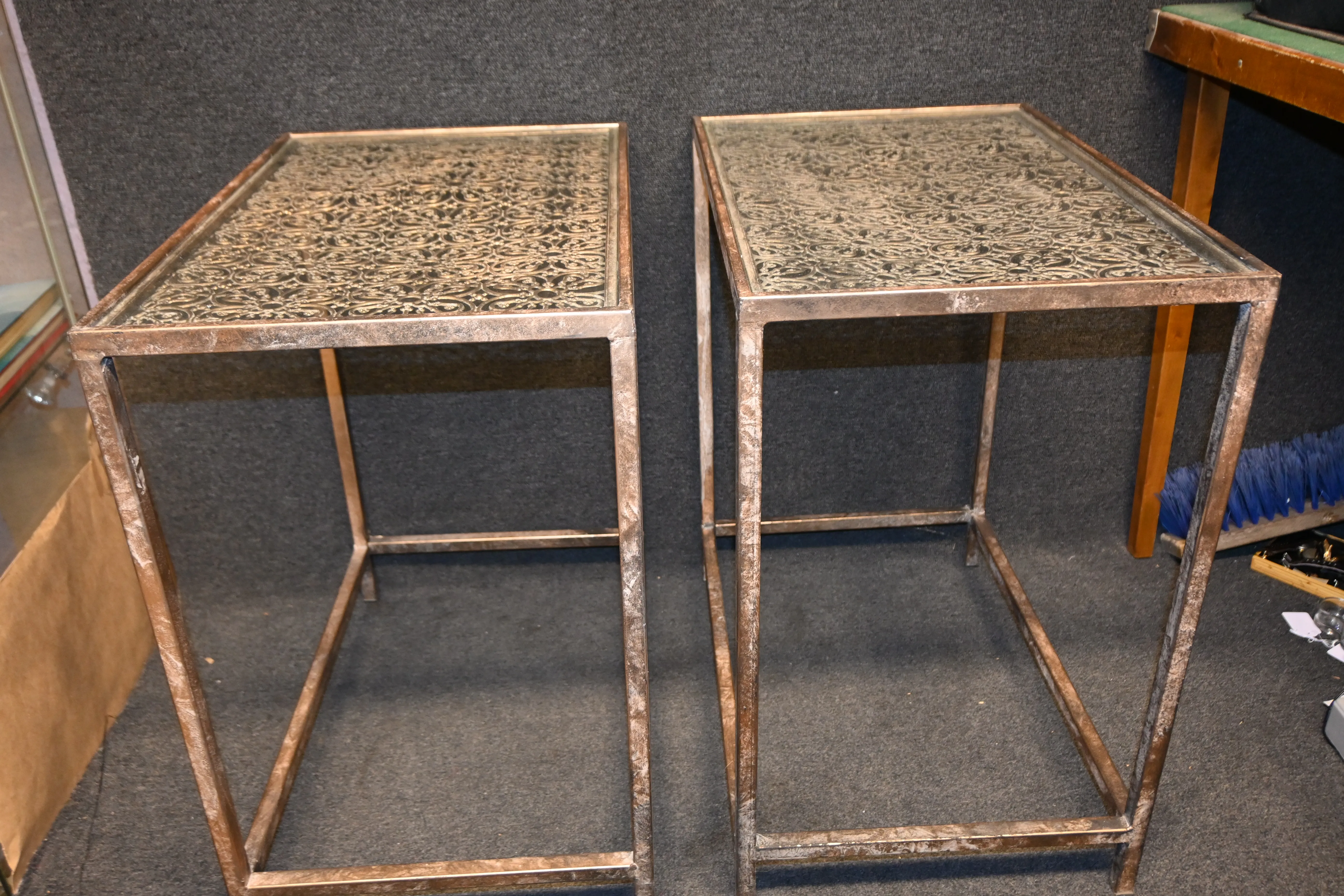 455. Lampbord 2st i metall & glas H:62cm B.38cm L.58cm