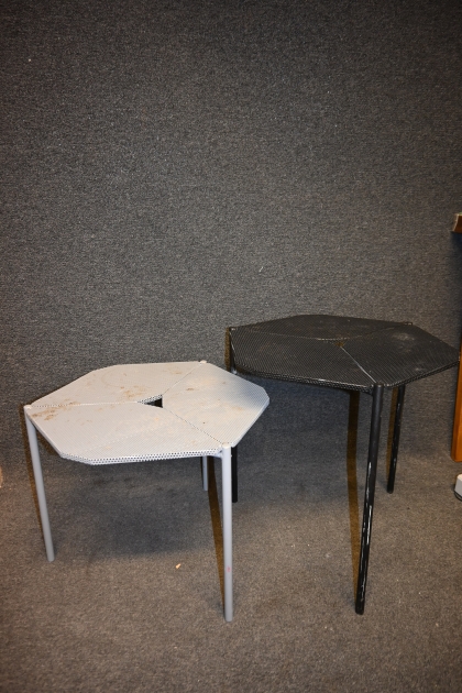 Lampbord i plåt modern design 2st D.48cm & H.37cm & 46cm (slitage)