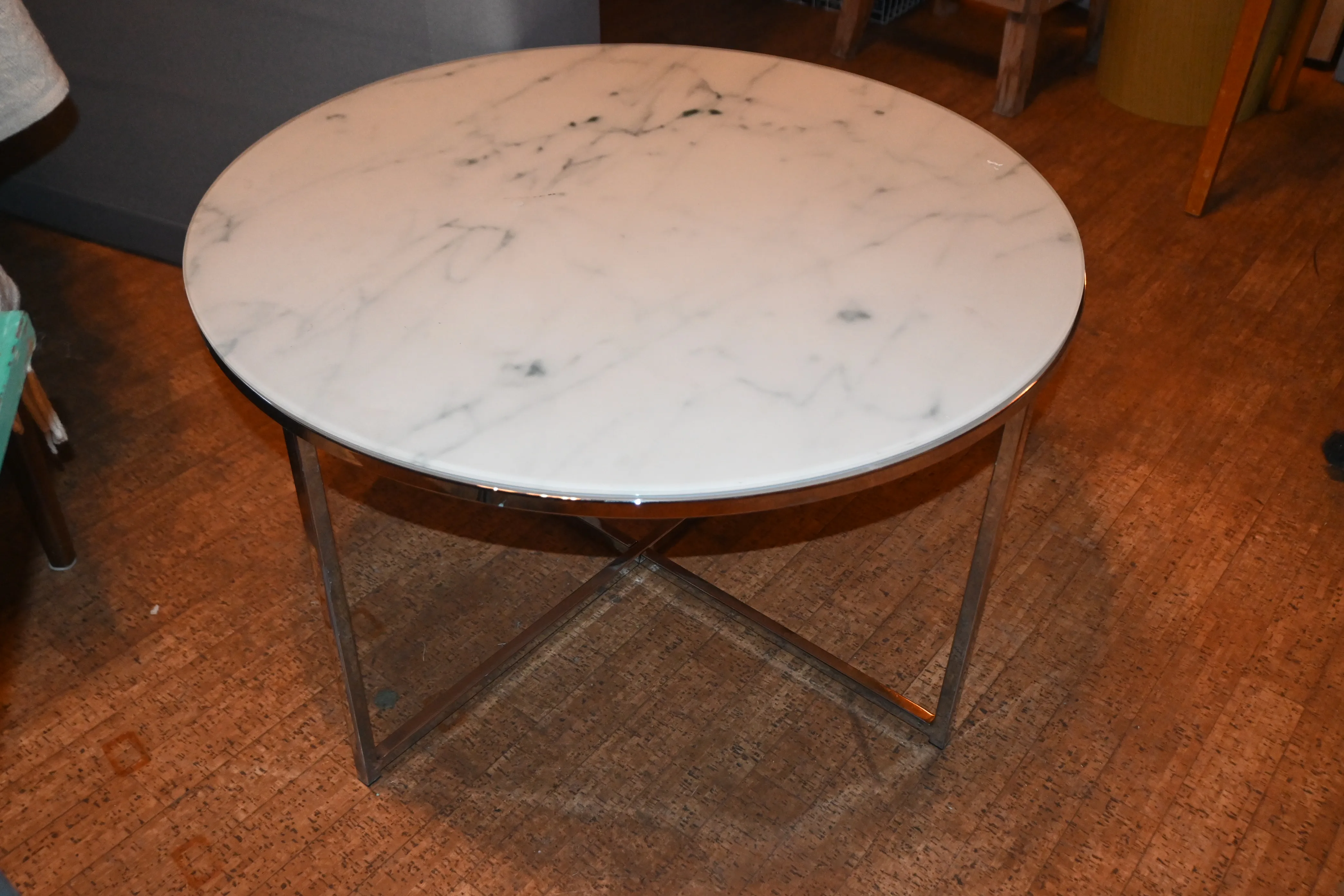 357. Lampbord med glasskiva & kromad benställning "Modern Design" D:80cm H.45cm