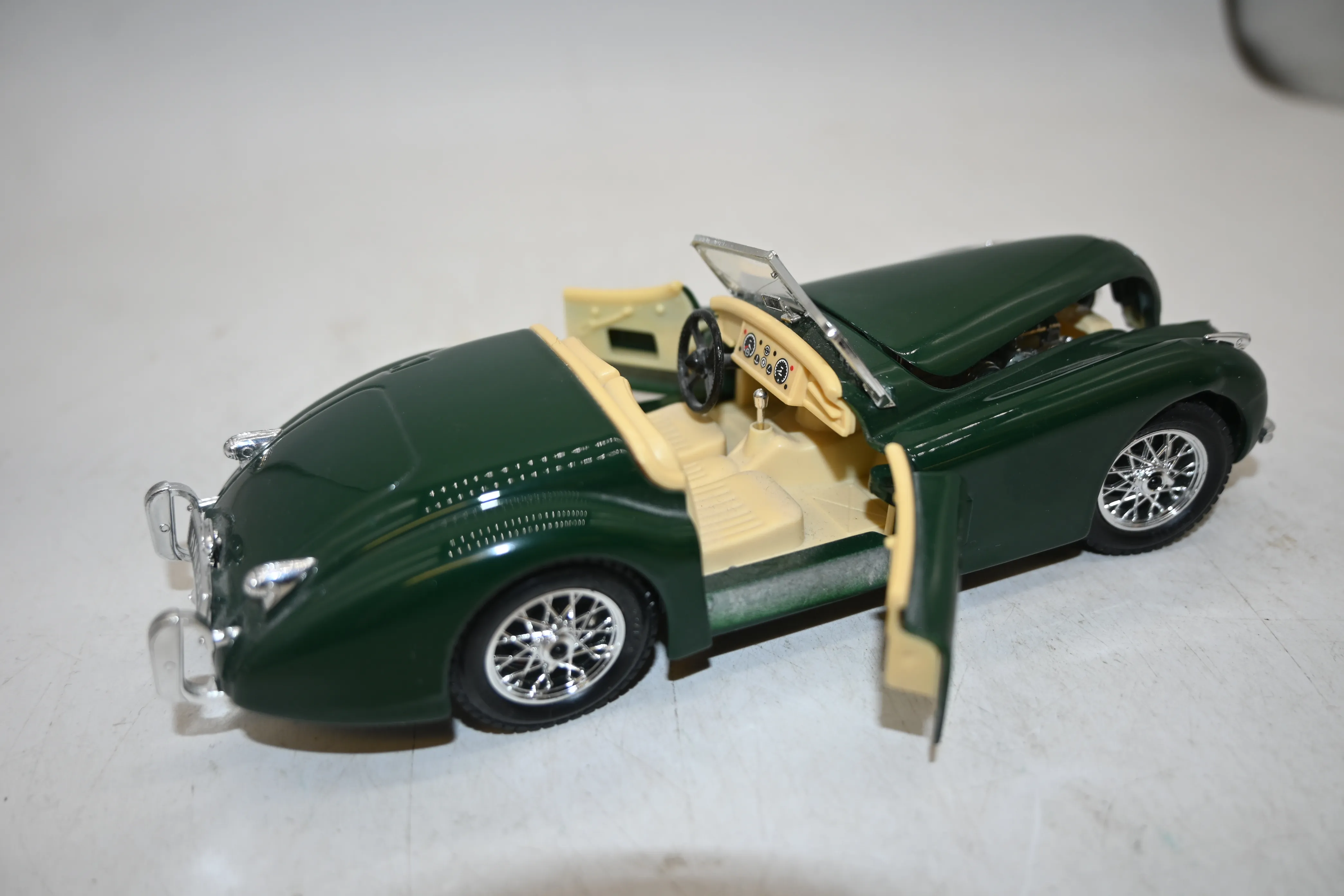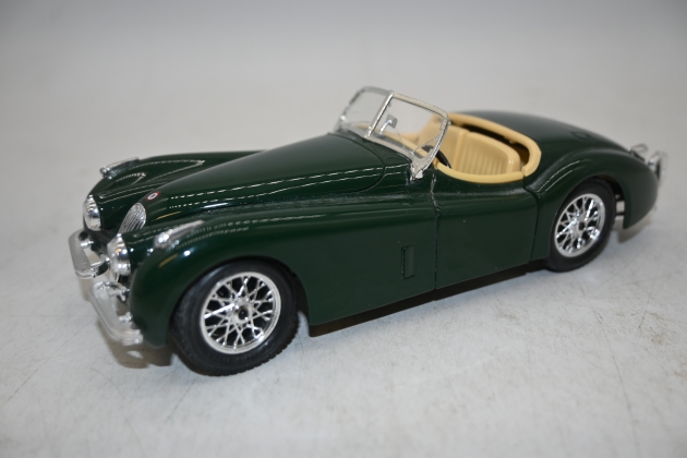 583. Leksaksbil i plåt "Burago" Jaguar XK 120 (1948) skala 1:24 (spricka i ruta)
