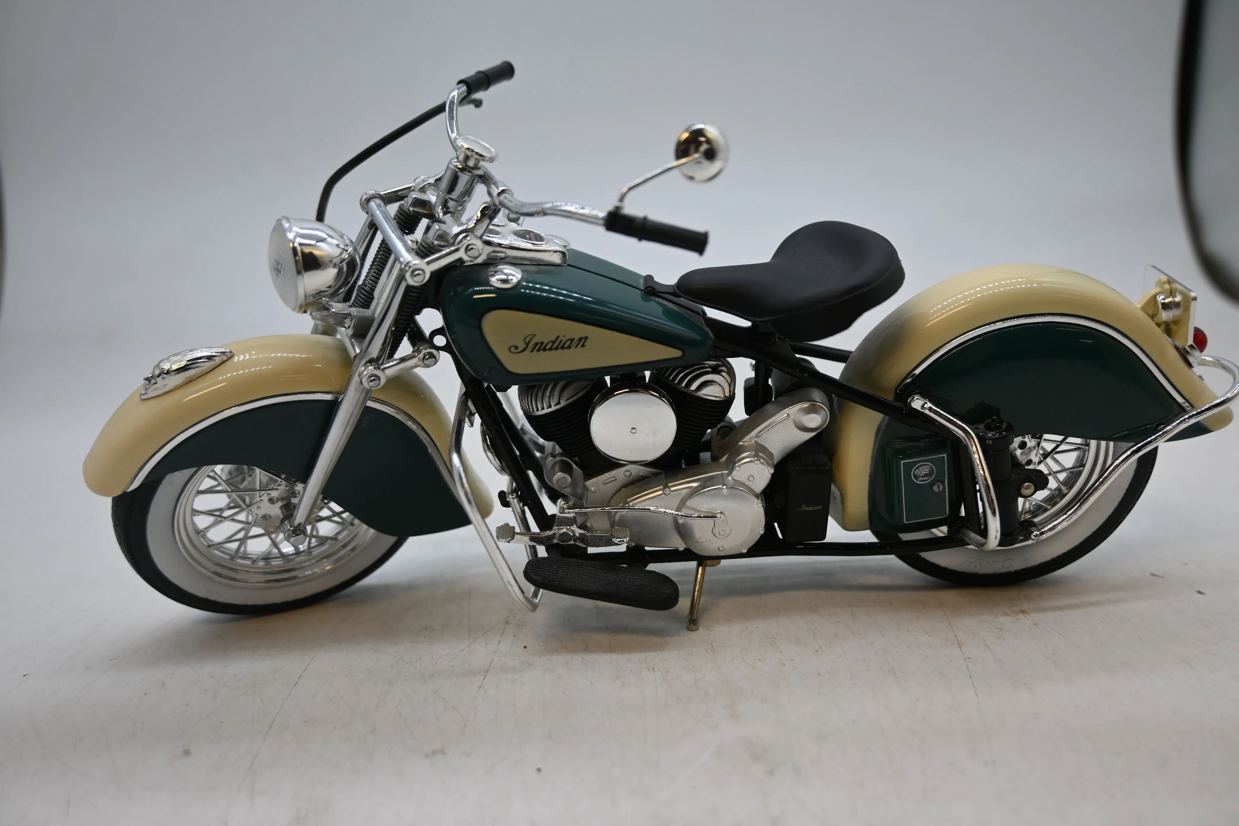 Leksaksmotorcykel i plåt "Indian" L.23.5cm