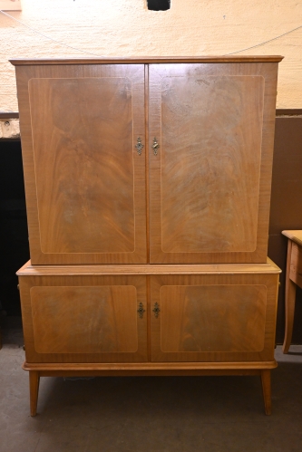 525. Linneskåp 1950.tal H.161cm B.108cm Dj.45cm (solblekt, nycklar medföljer)