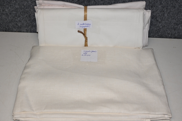 144. Linneväv fållad ca 155x240cm, 2st underlakan