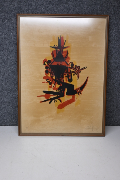 322. Litografi av Wilfredo Lam "Abstrakt" (1902-1982, Cuba) mmr.78.5x57.5cm