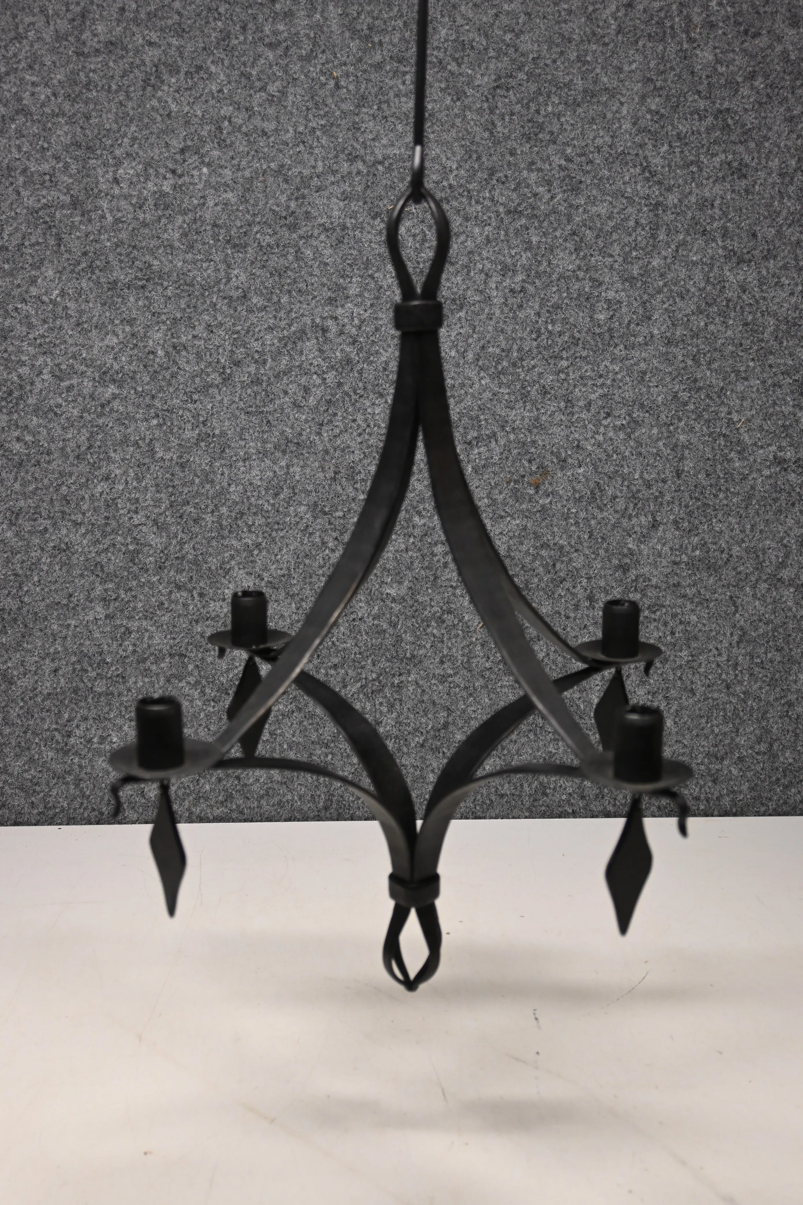 158. Ljuskrona i smide, Av Allan Sjöberg D.41cm H.50cm + 2st hängar 29cm