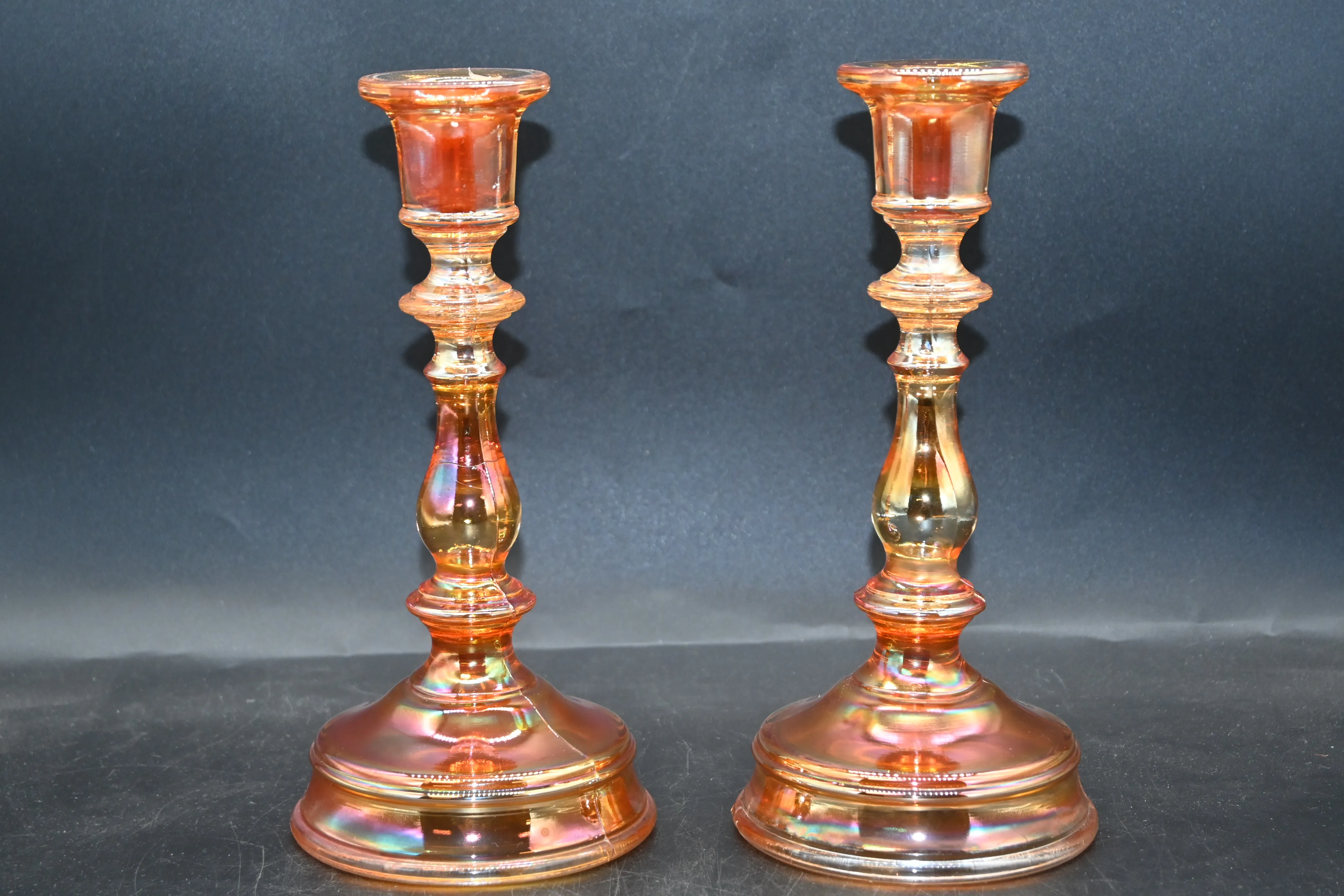 Ljusstakar 1par, lyster i pressglas H.21.5cm