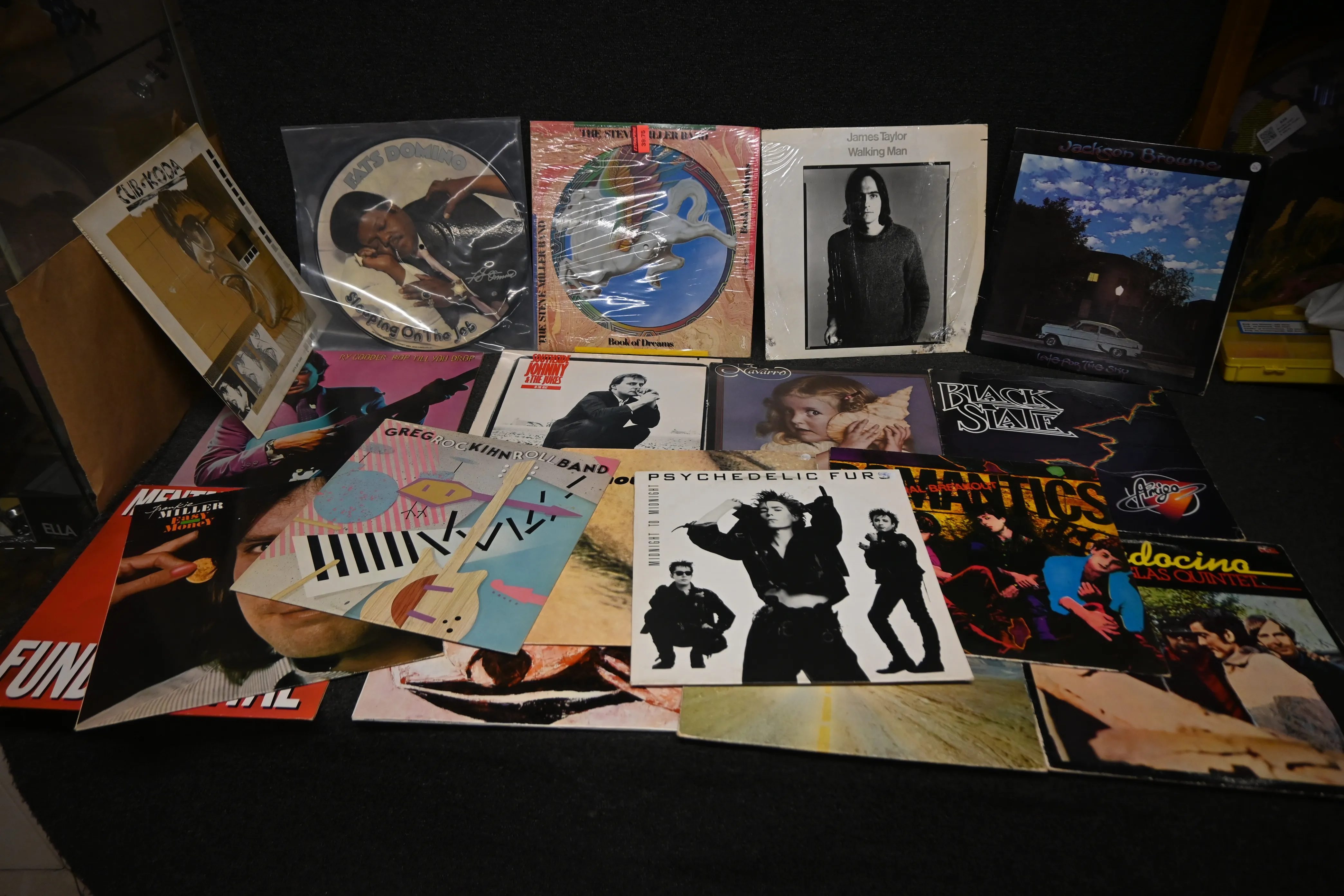 Lp skivor b.l.a Jackson Browne,Ry Cooder, samt 2 bildskivor