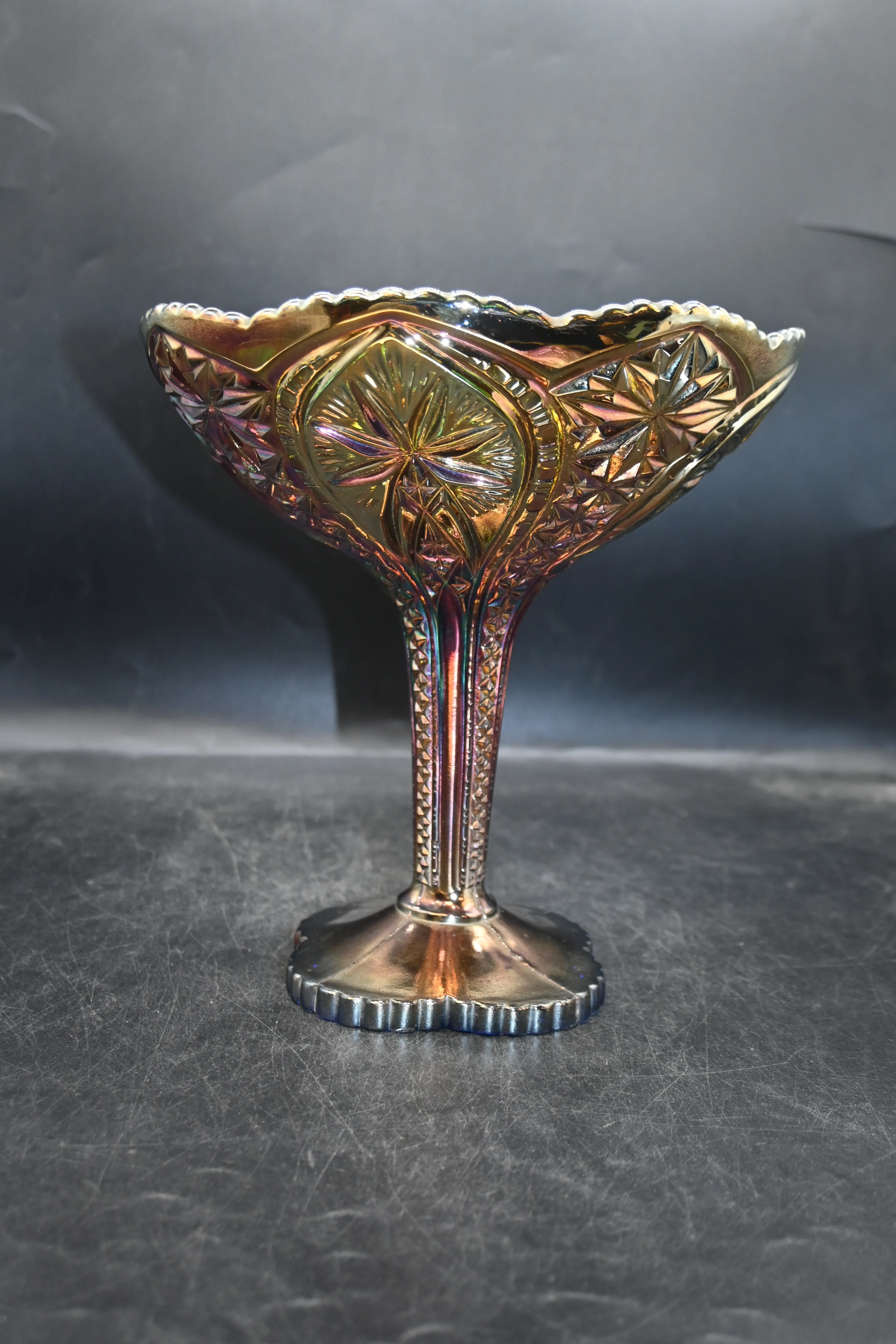 537. Lysterskål i pressglas på fot H:22.5cm D.22cm (nagg under fot)