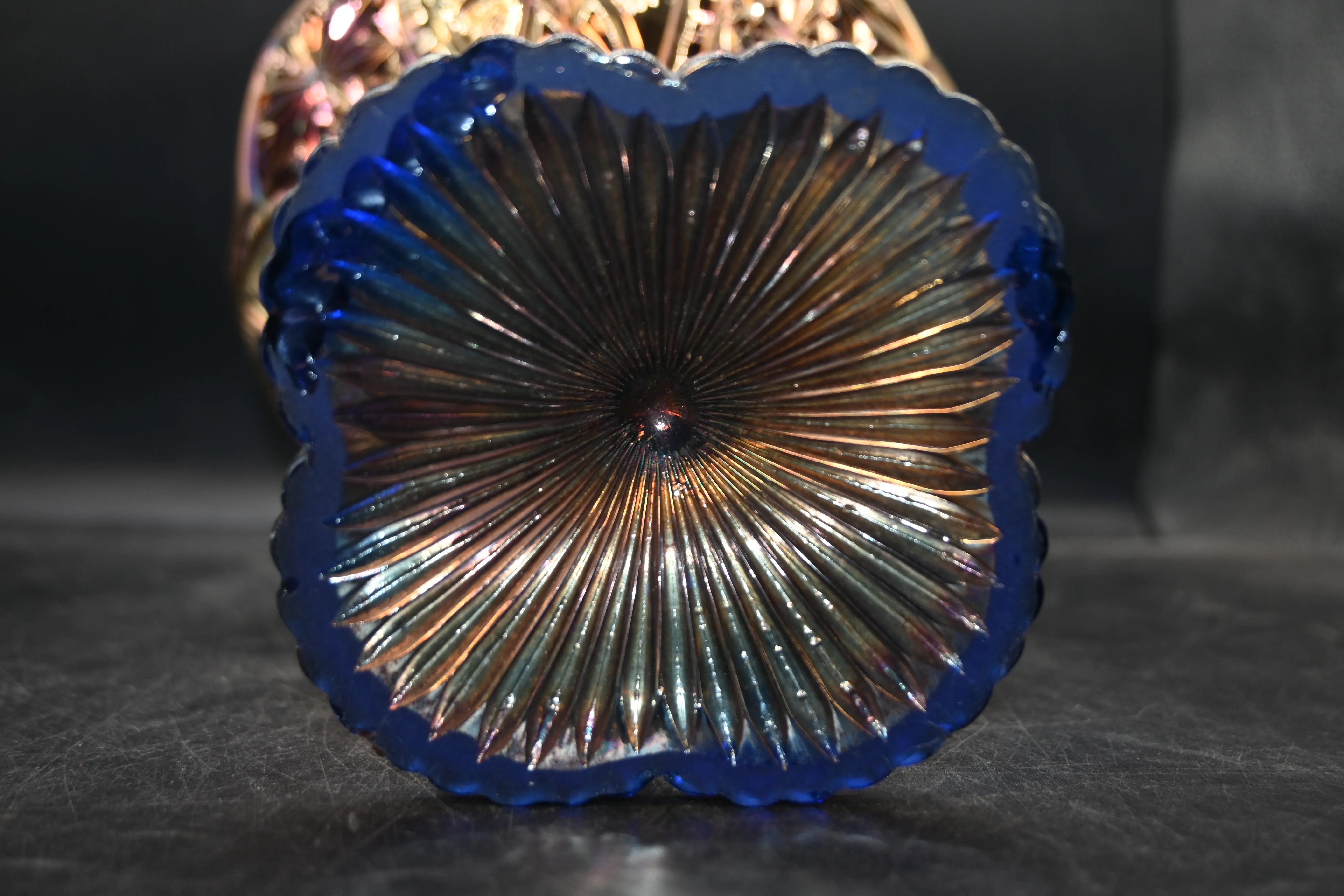 Lysterskål i pressglas på fot H:22.5cm D.22cm (nagg under fot)
