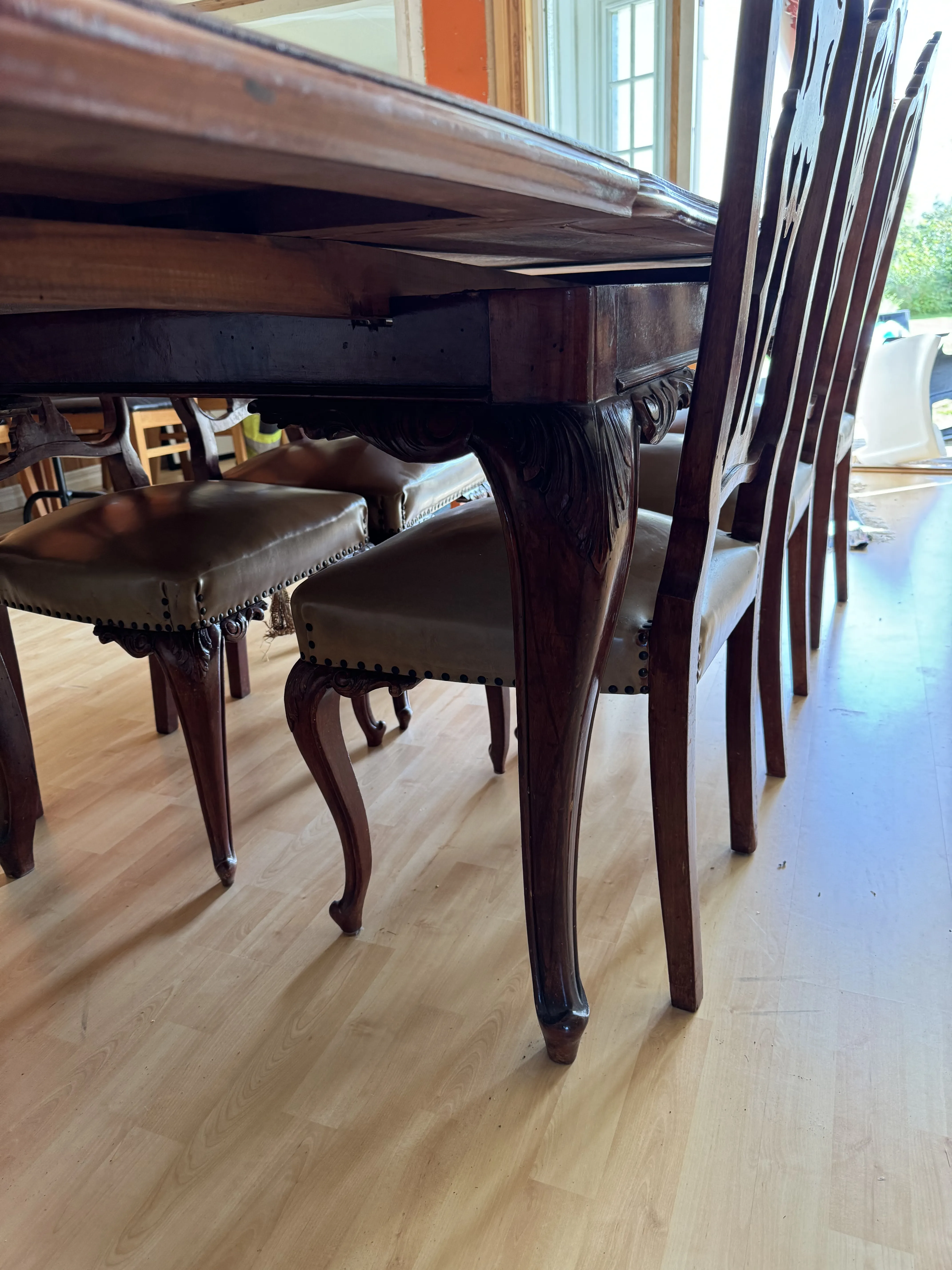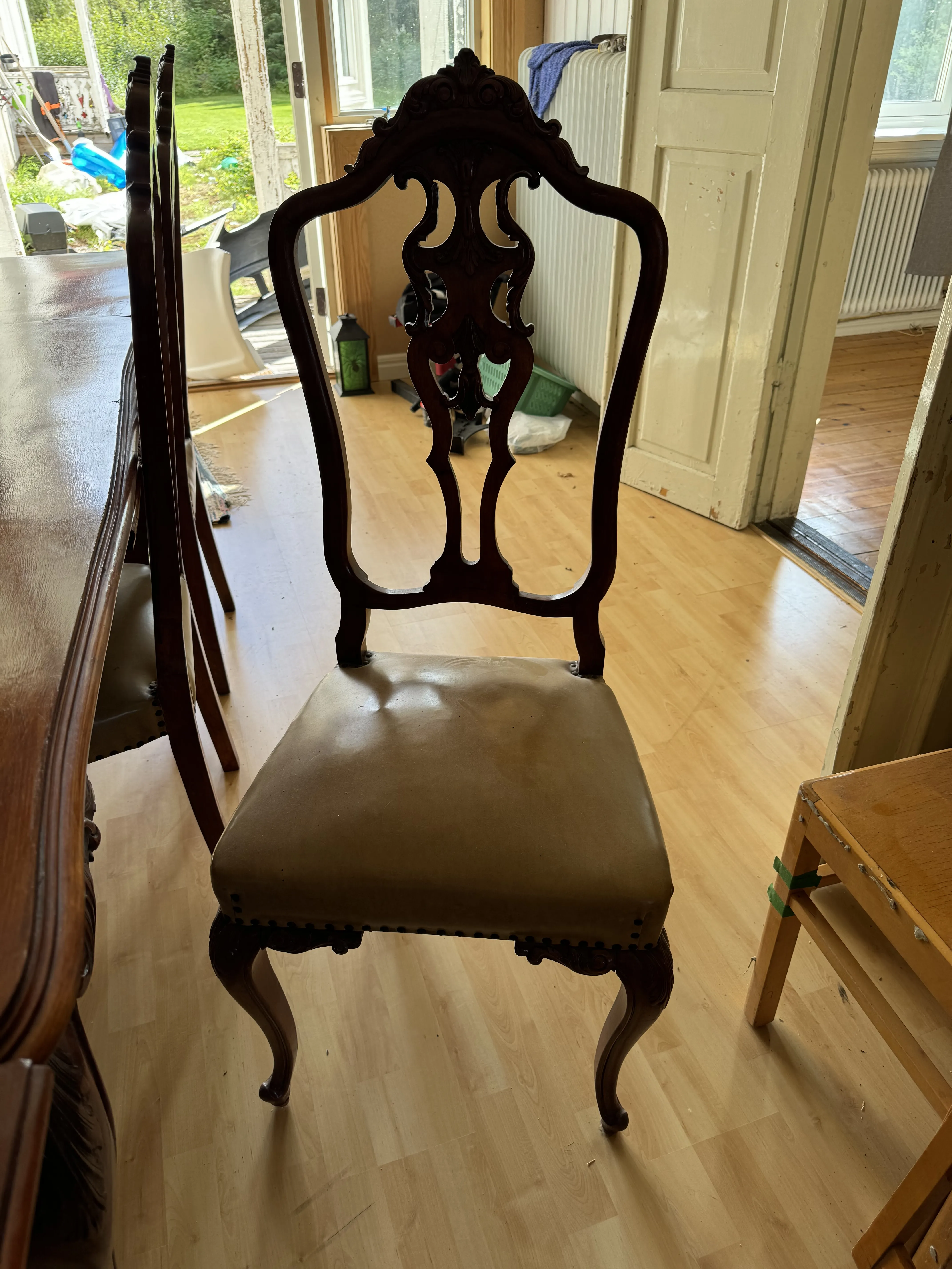 Matsalsbord + 6st stolar i Fransk rokoko stil L.ink ilägg 245cm B:100cm H.82cm (behöver översyn)