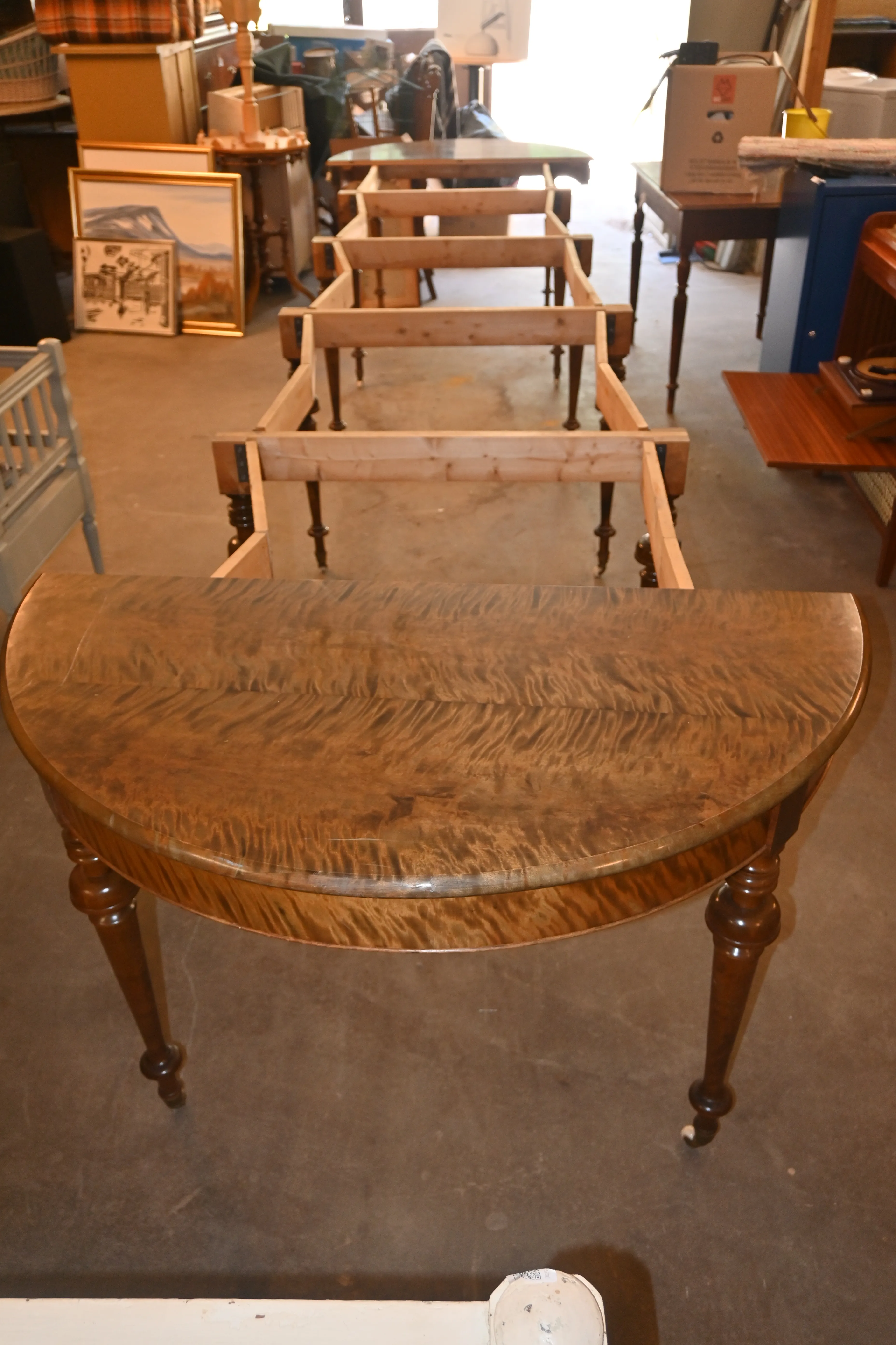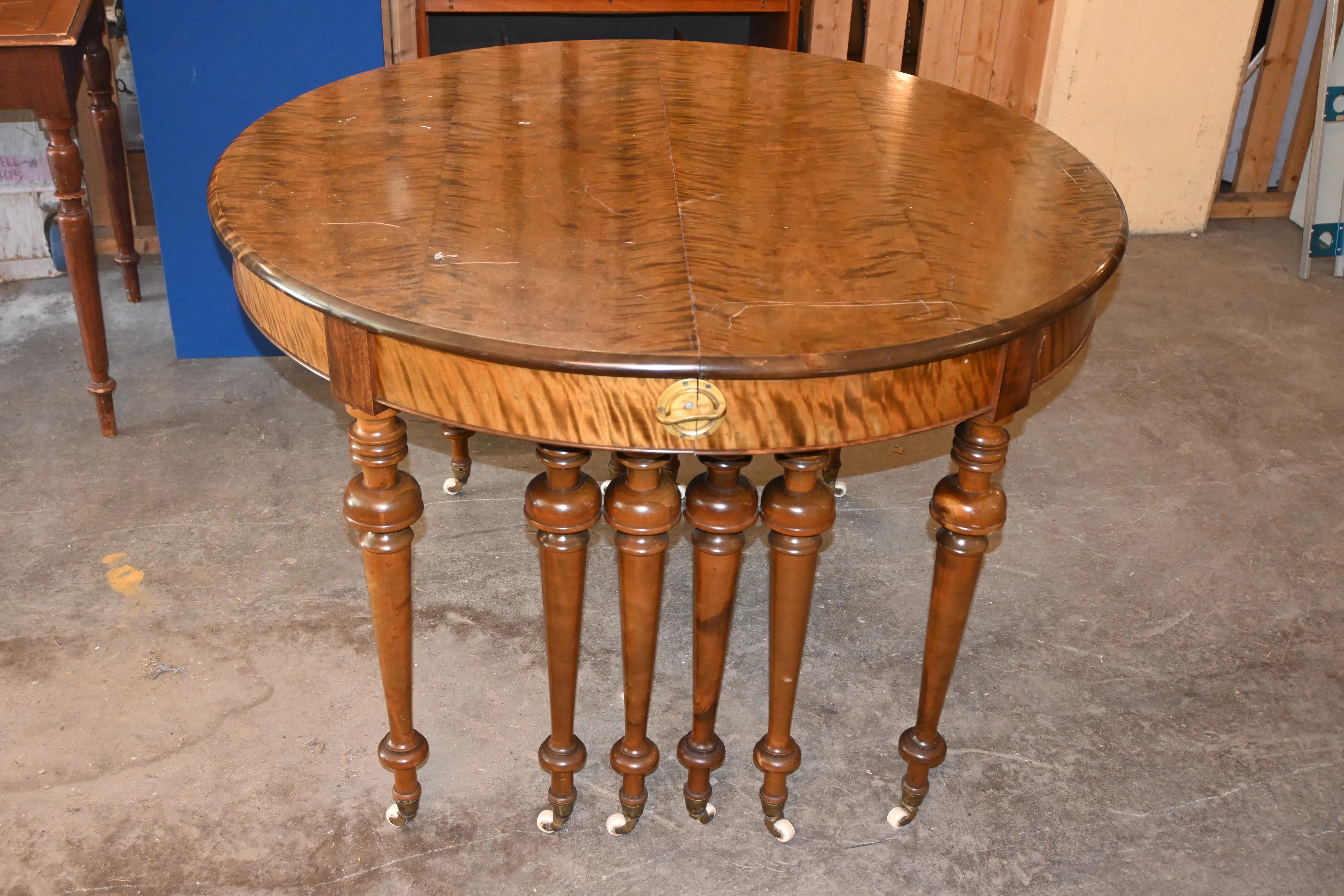 466. Matsalsbord 1800.tals slut, utdragbart från 114cm till & med 470cm (8st iläggsskivor saknas)