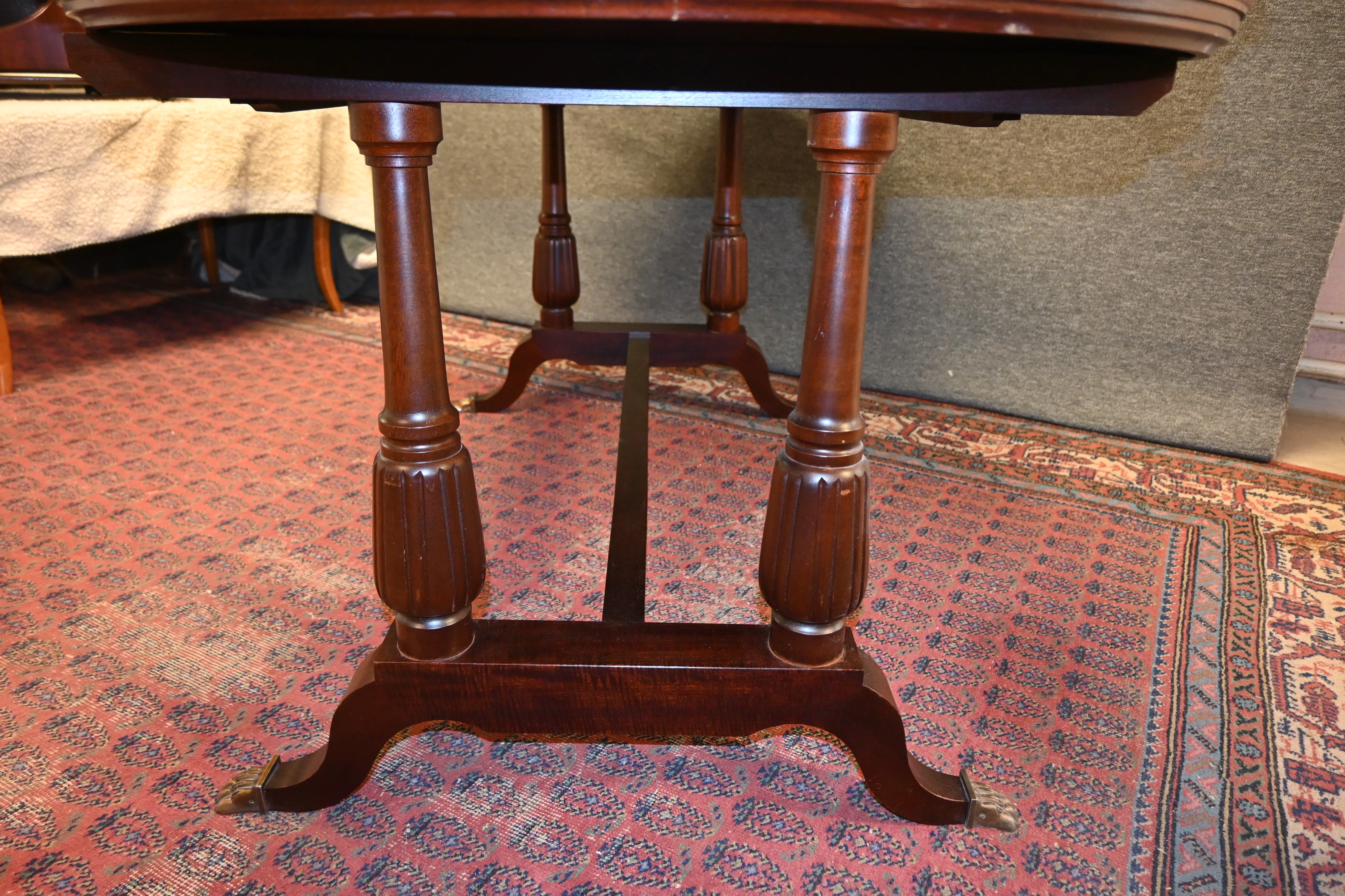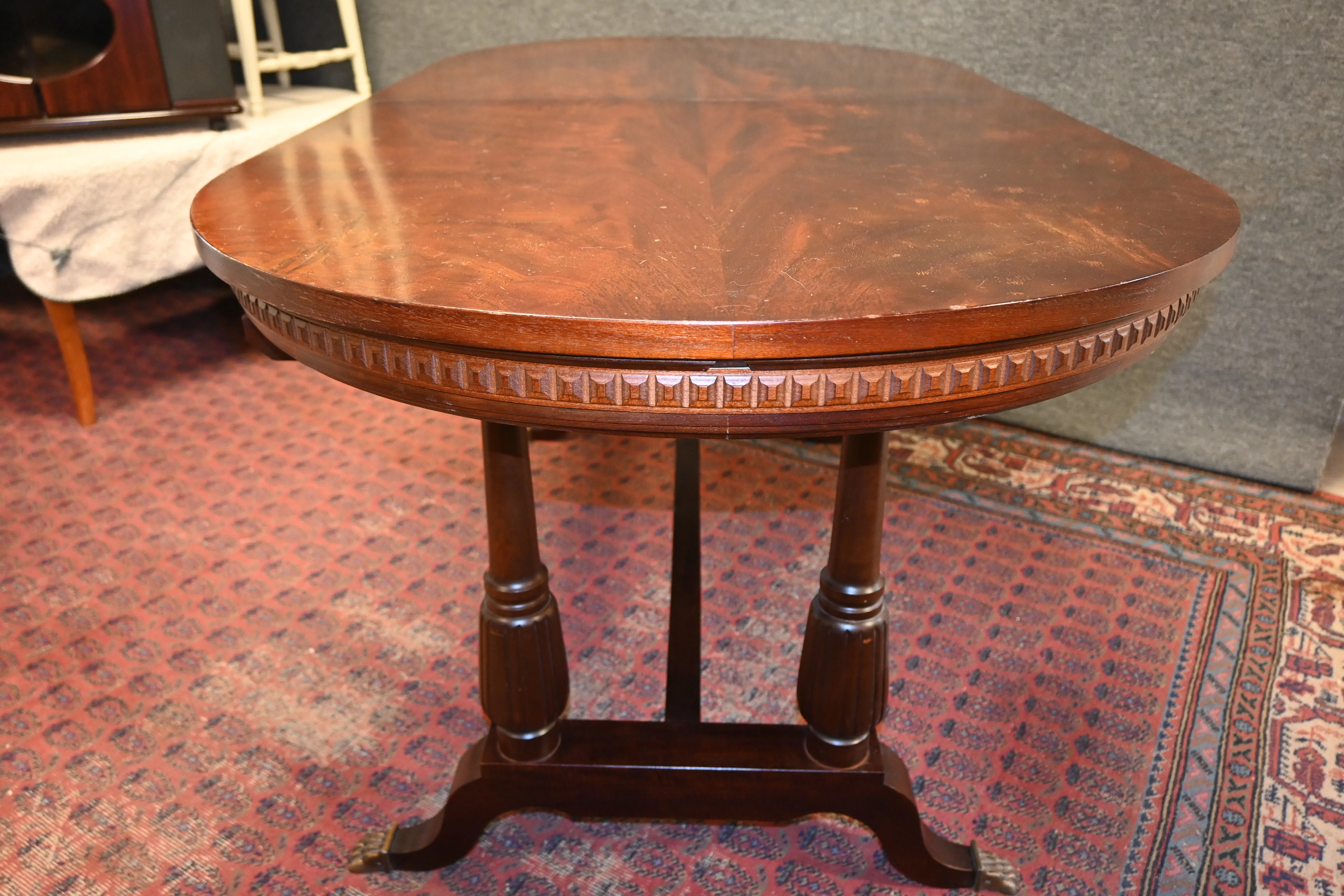 Matsalsbord med 1 ilägg i mahogny L.230cm ink ilägg B.90cm H.76cm (märken på skivan förekommer)