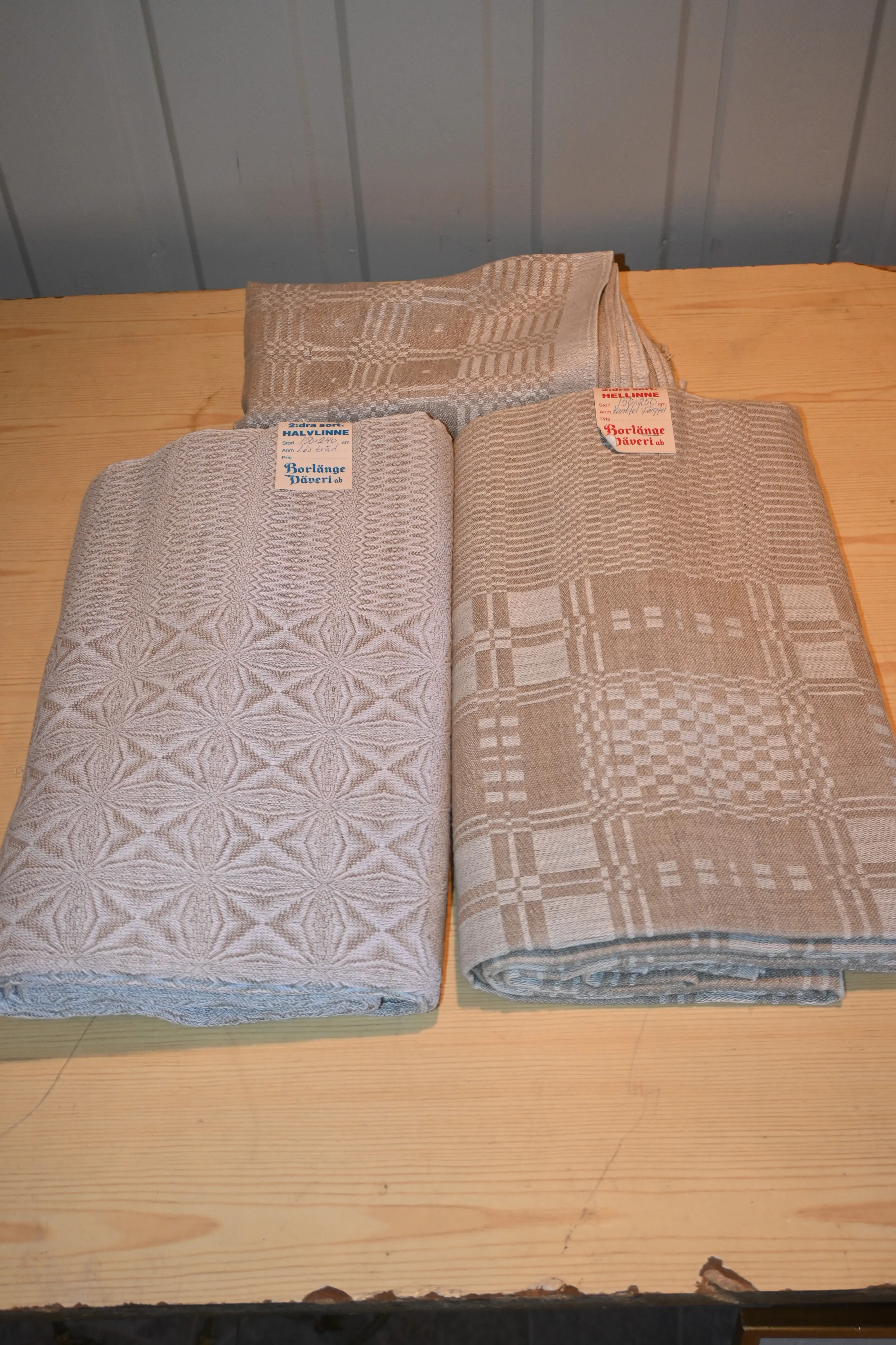 Matsalsdukar 2st, Borlänge väveri Ab "andrahands sortering" 150x250cm, 150x240cm (lös tråd, kantfel & färgfel) + 6st servetter