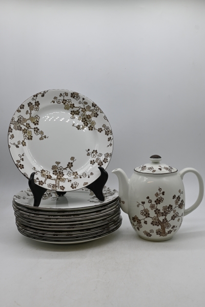 399. Mattallrikar 12st D.24cm + kanna, Rörstrand "Japonica"