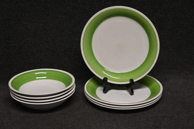 138. Mattallrikar 4st + djupa tallrikar 4st "Grön Pastell" (krackelering förekommer)