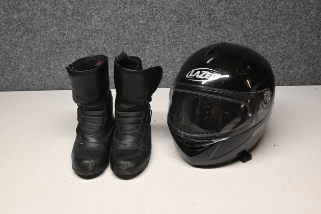 227. MC-Hjälm strl L + mc-skor strl 40 (bruksslitage)