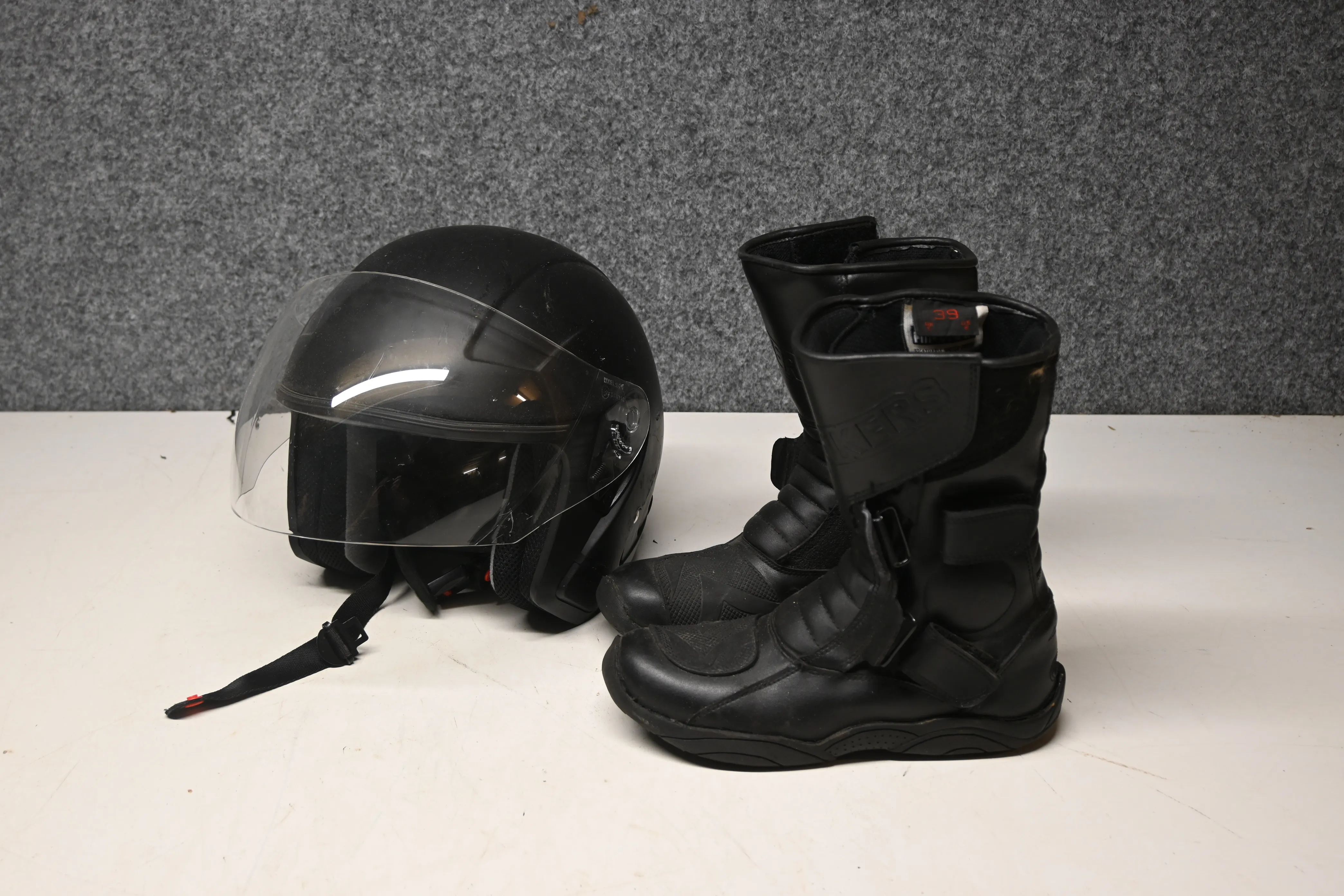 Mc-Hjälm strl M + Mc-skor strl 39 (bruksslitage)