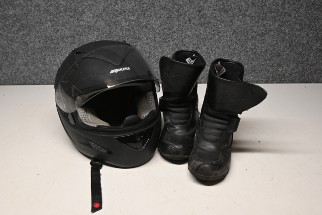 Mc-Hjälm strl XS + Mc-skor strl 37 (bruksslitage)