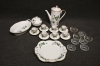 236. Kryddservis 10del + skärbräda i porslin (skador, lagningar förekommer)