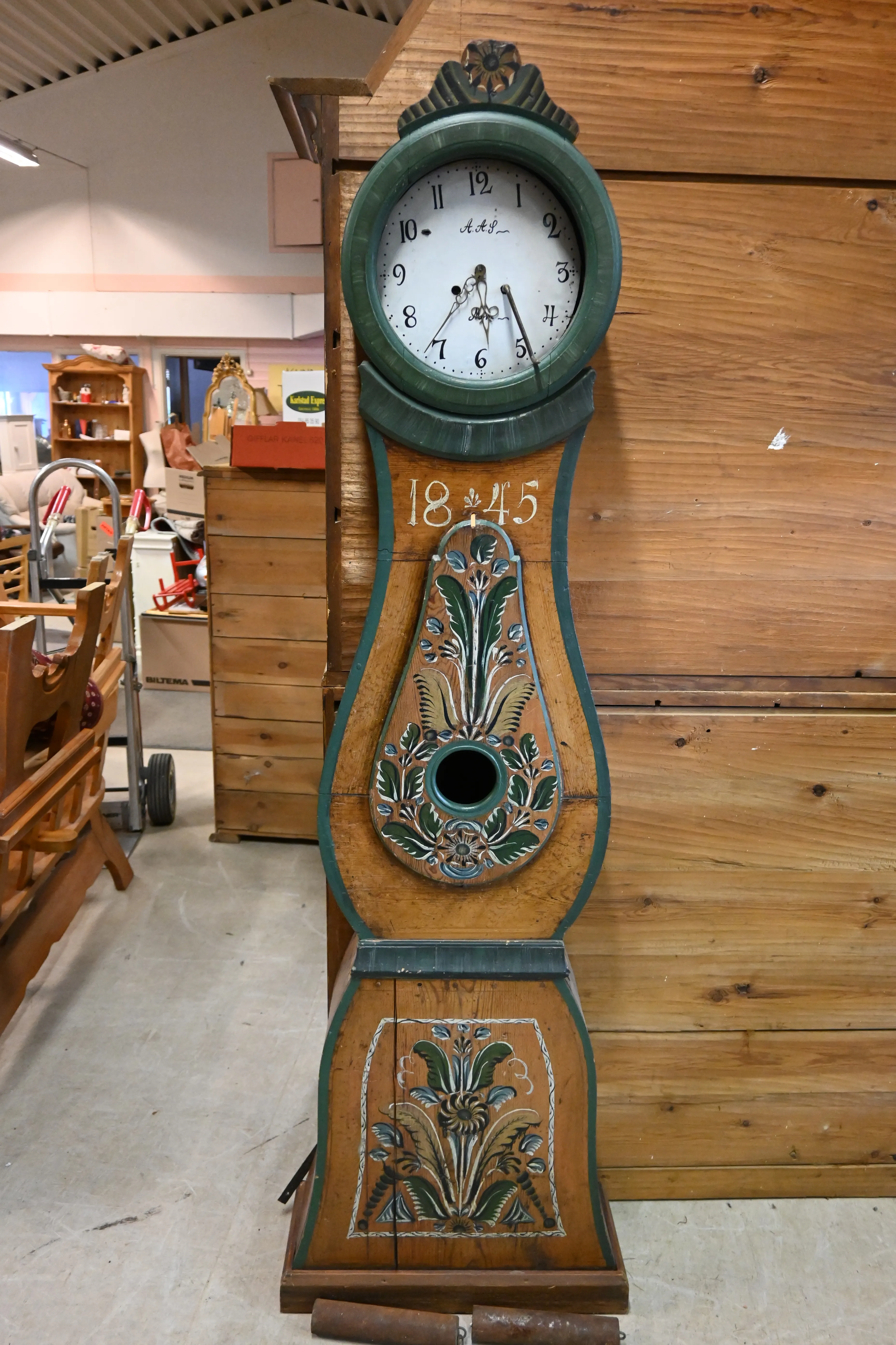 534. Moraklocka 1845 med original målning glas saknas H=193cm