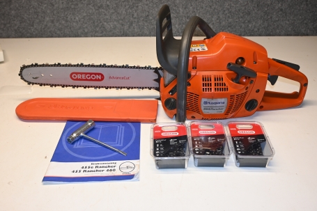 54. Motorsåg, Husqvarba 455 Rancher + 3st nya kedjor i kartong (bra bruksskick, fungerar)