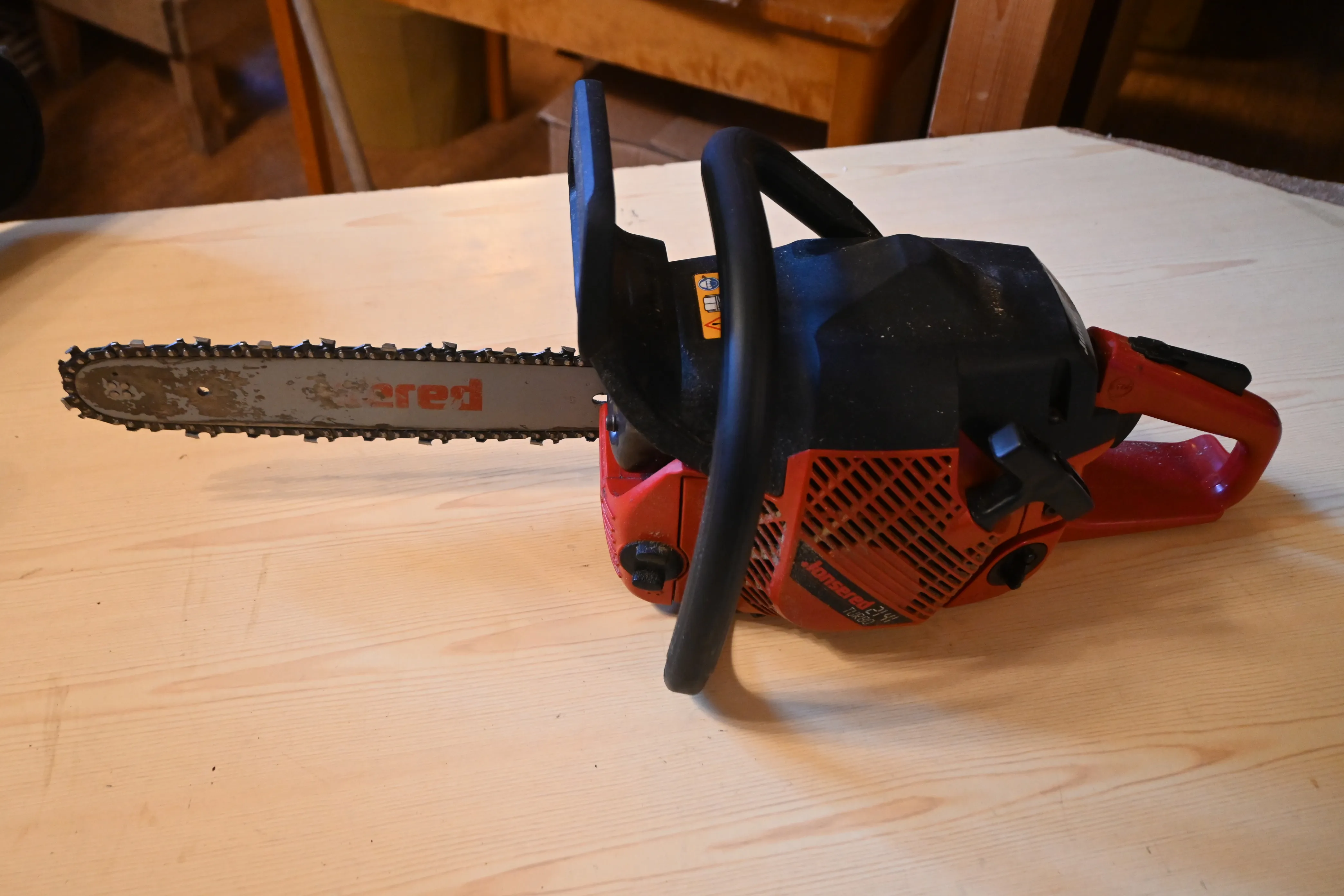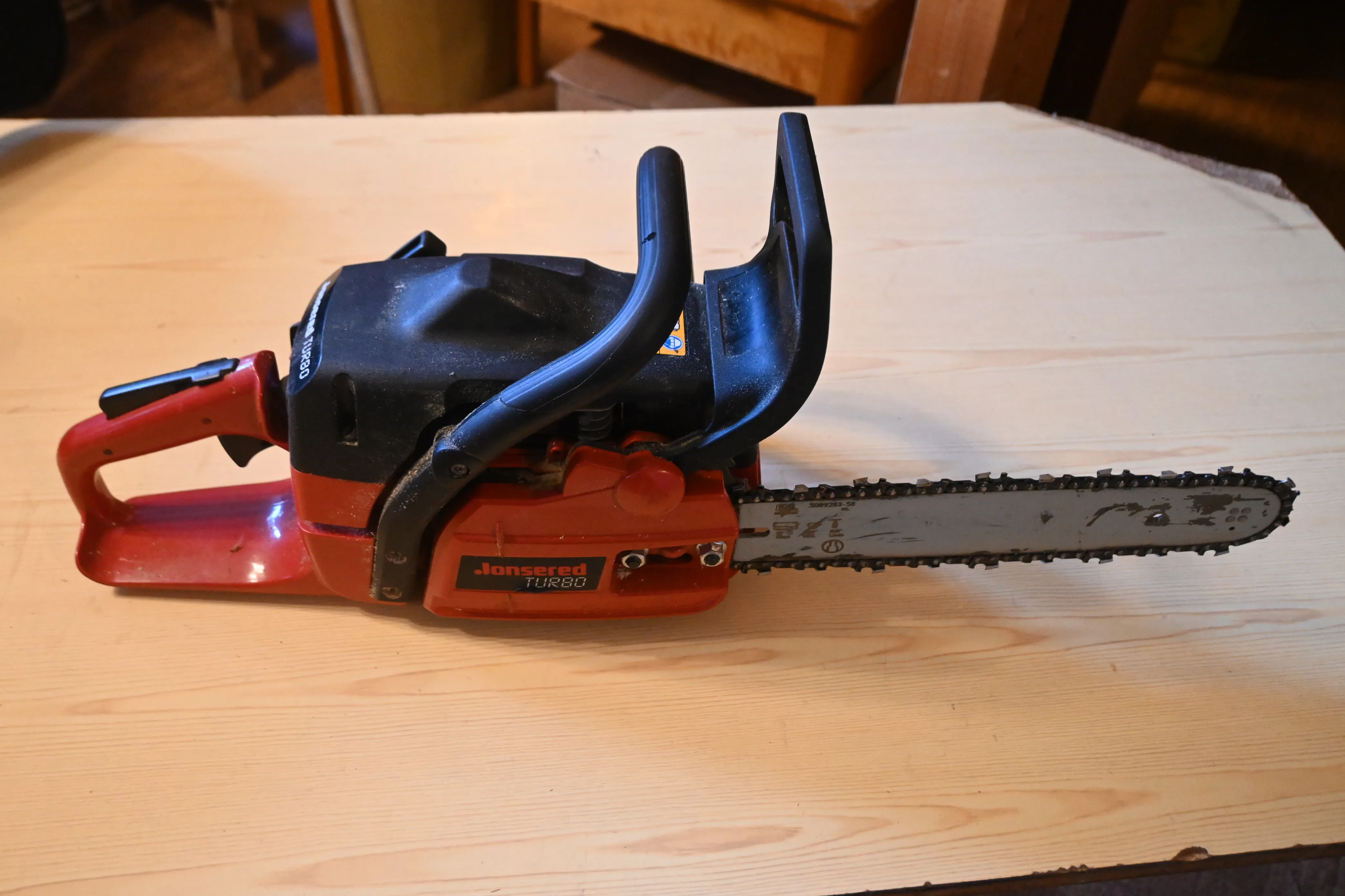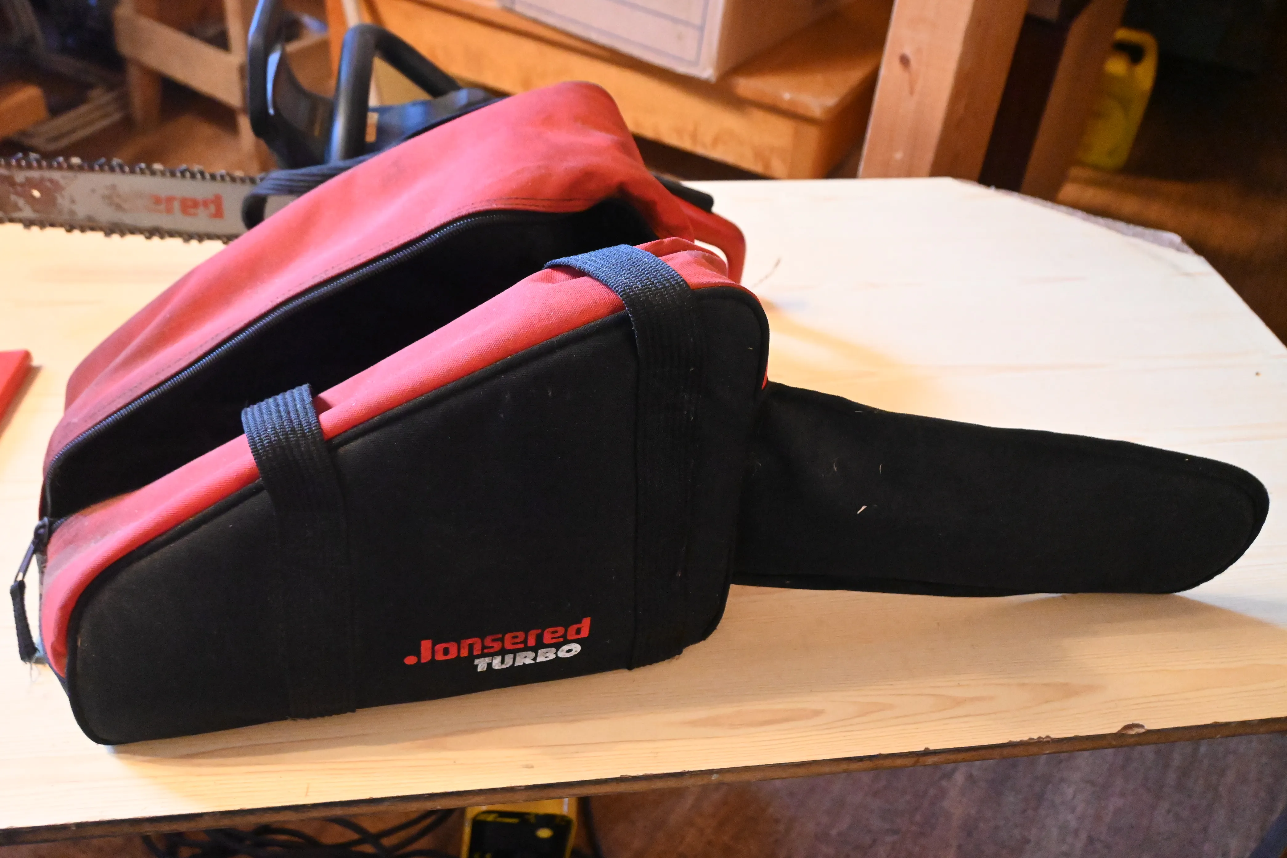 380. Motorsåg Jonsered Turbo med väska, verktyg, fungerar