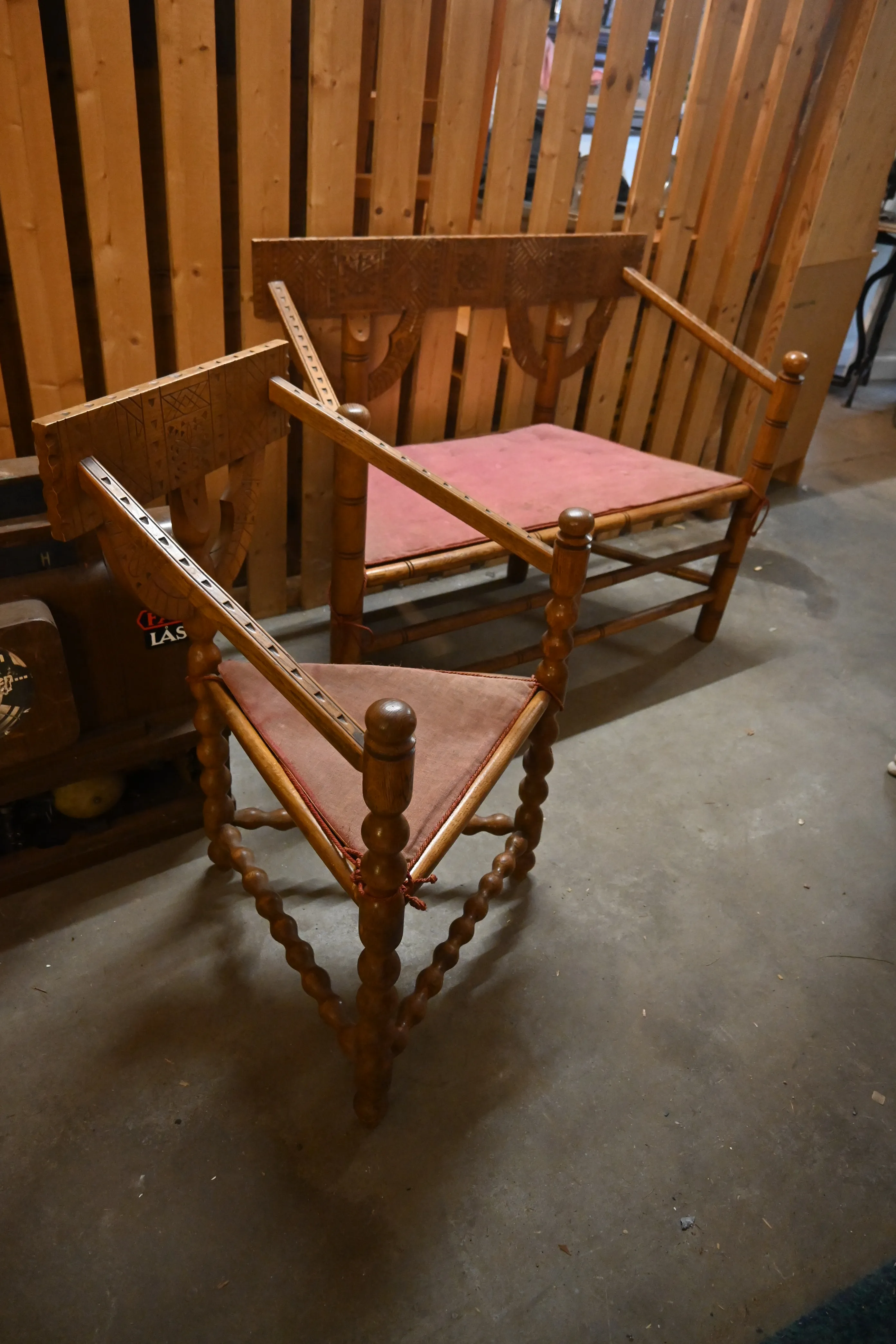 656. Munkmöbel i ek soffa & karmstol (bruksslitage)