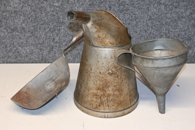 55. Oljekanna 5L, skopa & tratt i zink 3del
