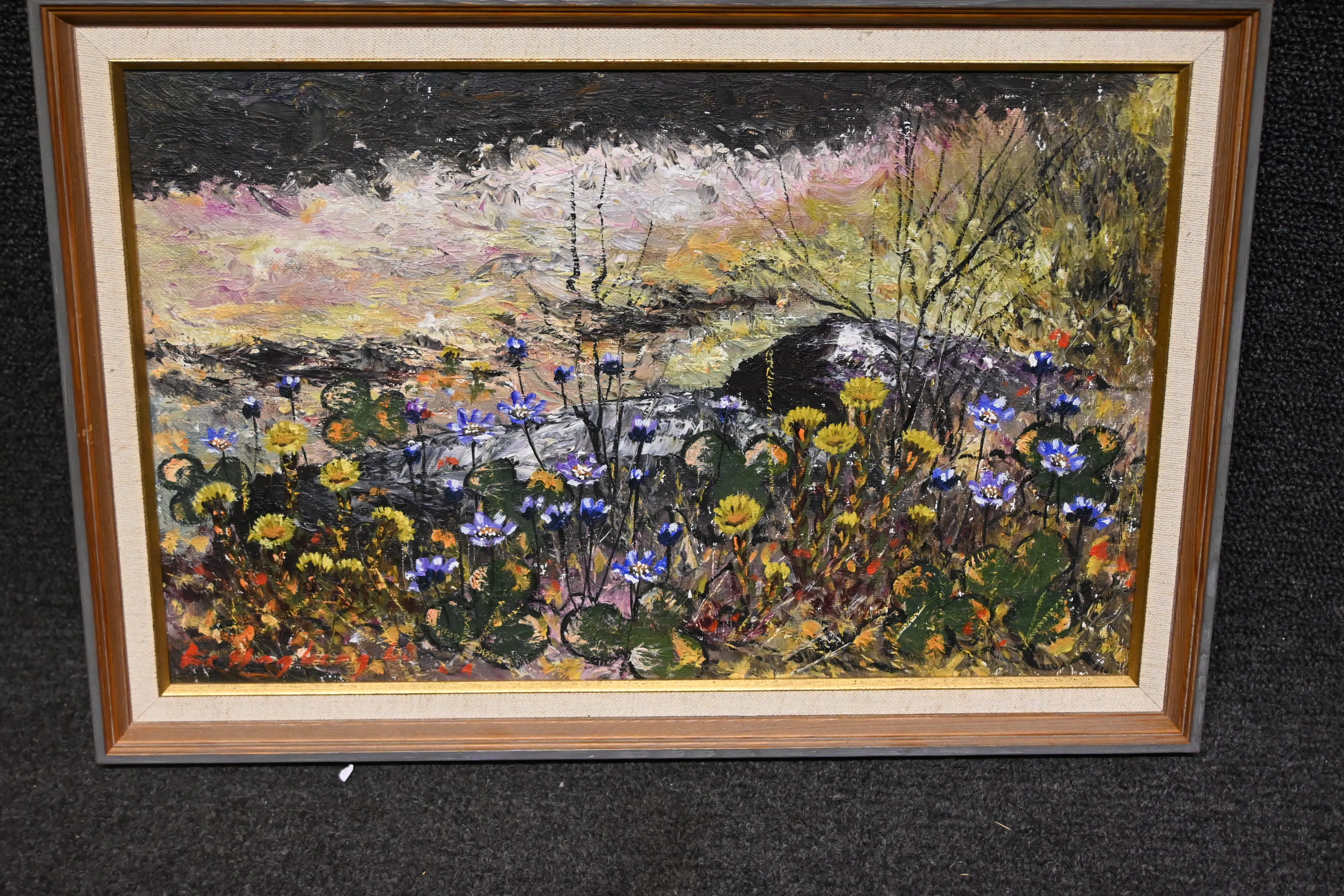445. Gouach av Per Pedersen "Tjusterby Sunne" mmr.30x37cm