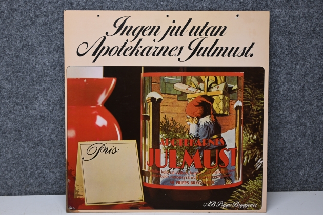 Pappskylt dubbelsidig "Apotekarnes Julmust" 50x50cm (bruksslitage)