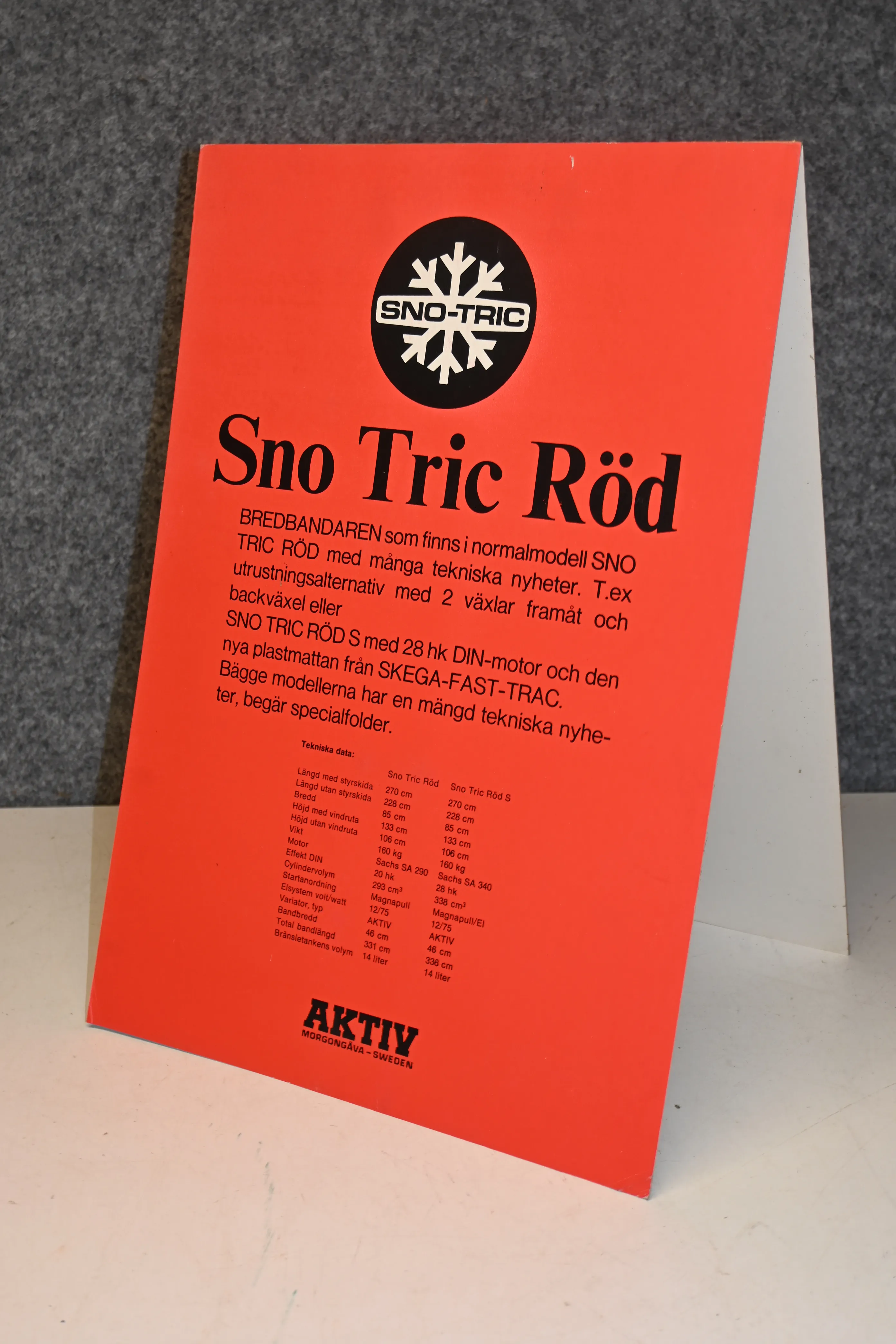 75. Pappskylt dubbelsidig "Sno Tric Röd" 1970/80.tal 45x108cm (åldersrelaterad slitage)