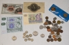 214. Parti äldre sedlar 10kr & 5kr + div mynt bl a 10 & 25 öre i silver, 1/4 dollar Liberty 1982