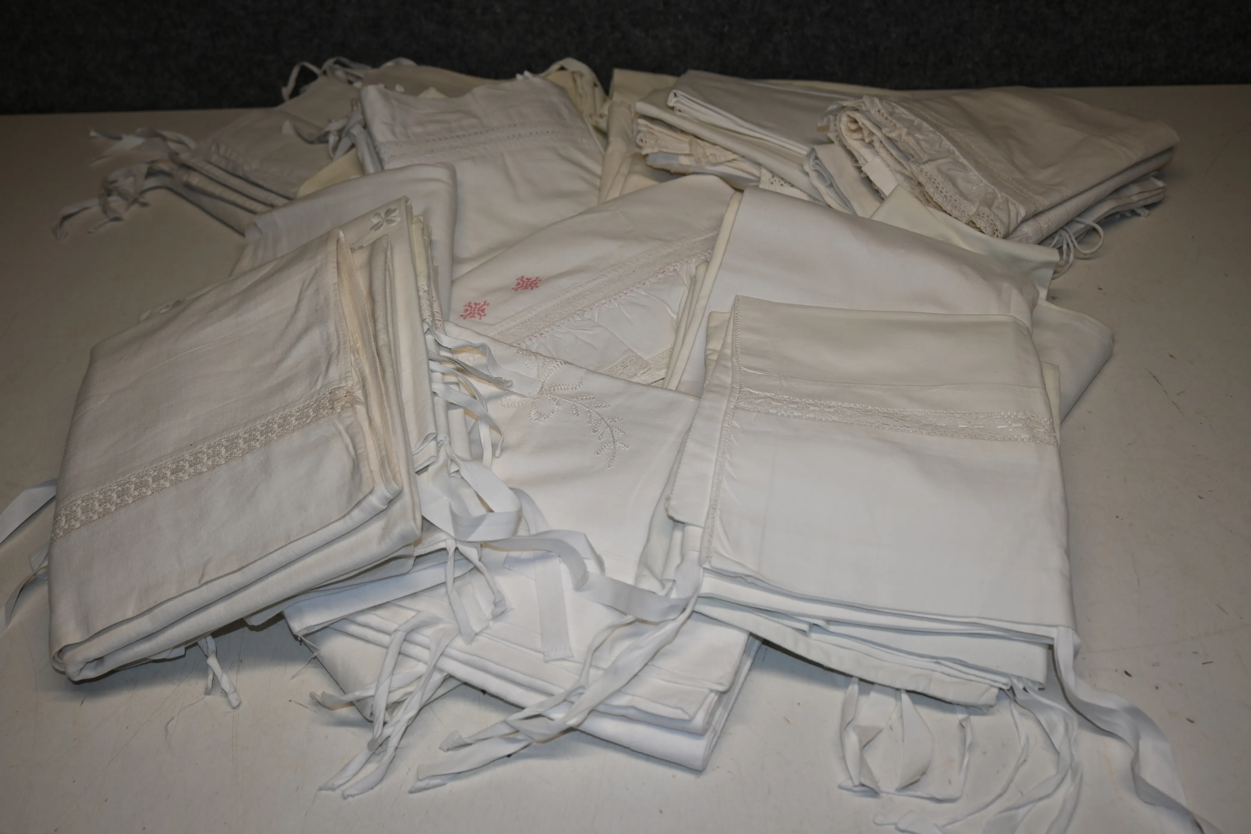 601. Parti örngott bl a med broderi, spets (ngn fläck kan förekomma)