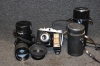 Parti bälgkamera Agfa Isolatte 1, obj Auto CHINON 1:2.8 F=135mm , blixt kako auto-201 + 2st objektivväskor