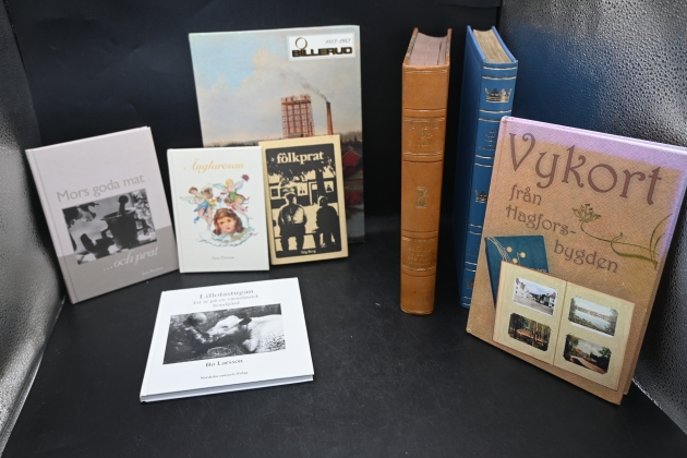 583. Parti böcker bl a Eva Persson, Stig Berg, Vykort från Hagforsbygden