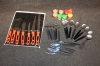 Parti bestick & knivset, äggkoppar i plast retro