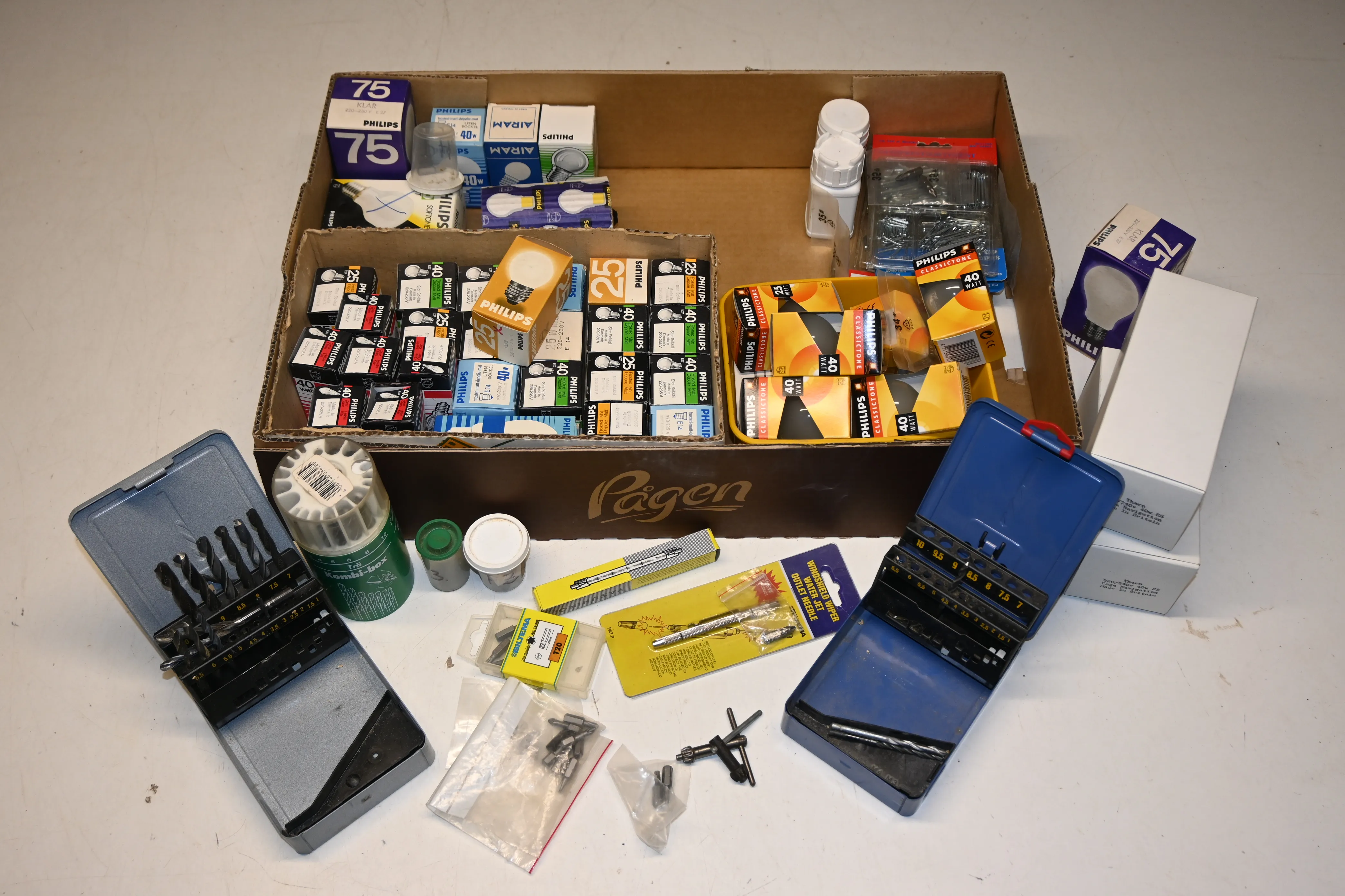 Parti borr, glödlampor bl a 25w, 40w