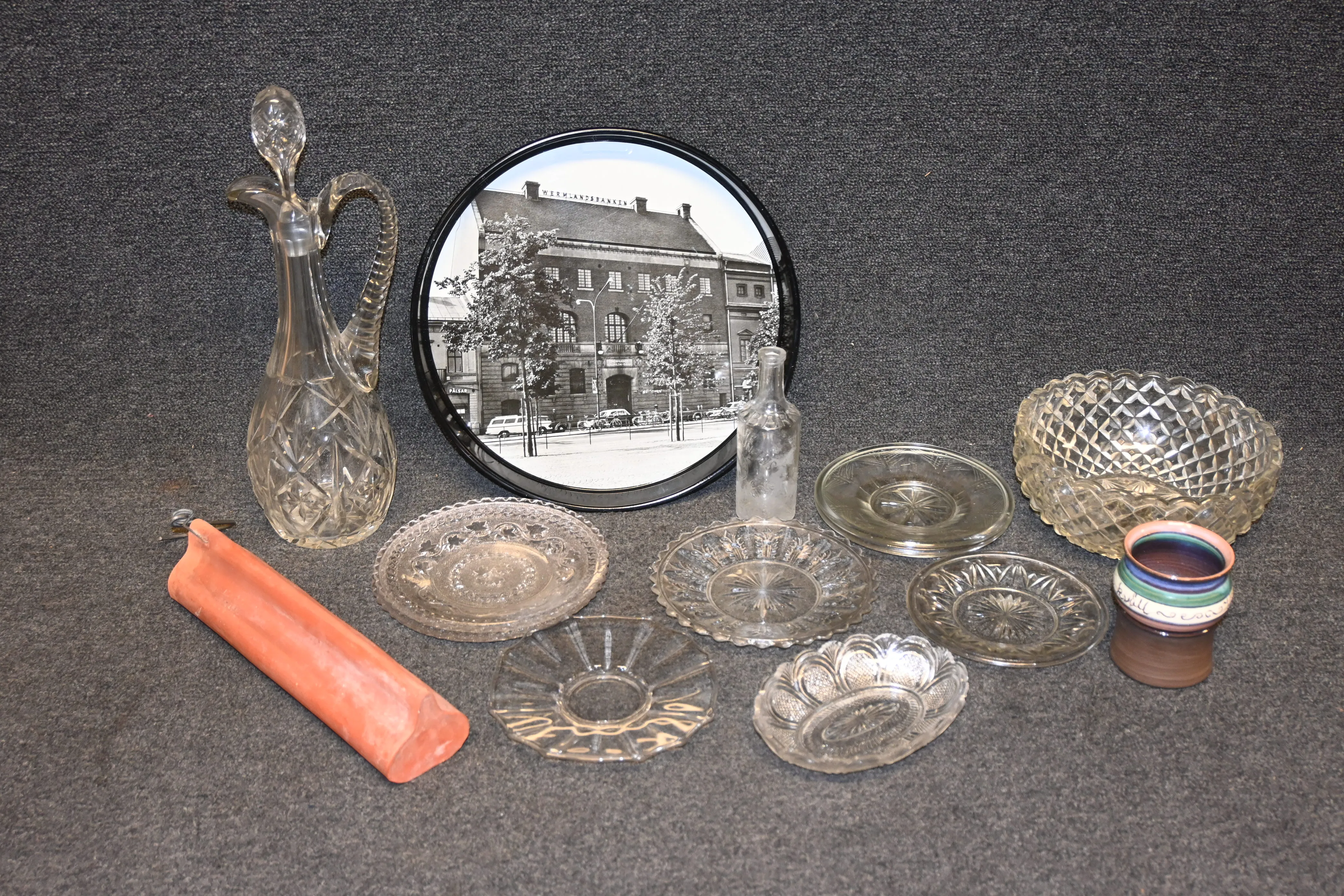 276. Parti bricka, glasassietter, skål, karaff m.m