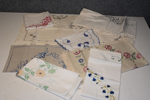275. Parti broderade dukar (ngn fläck kan förekomma)