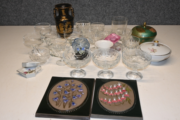 Parti div dessertskålar, vas, ishink, keramik tavlor m.m