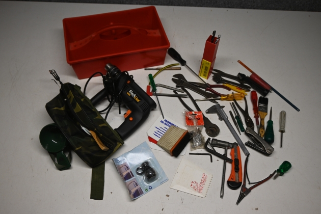 Parti div verktyg, borrmaskin (fungerar), pimpelspö