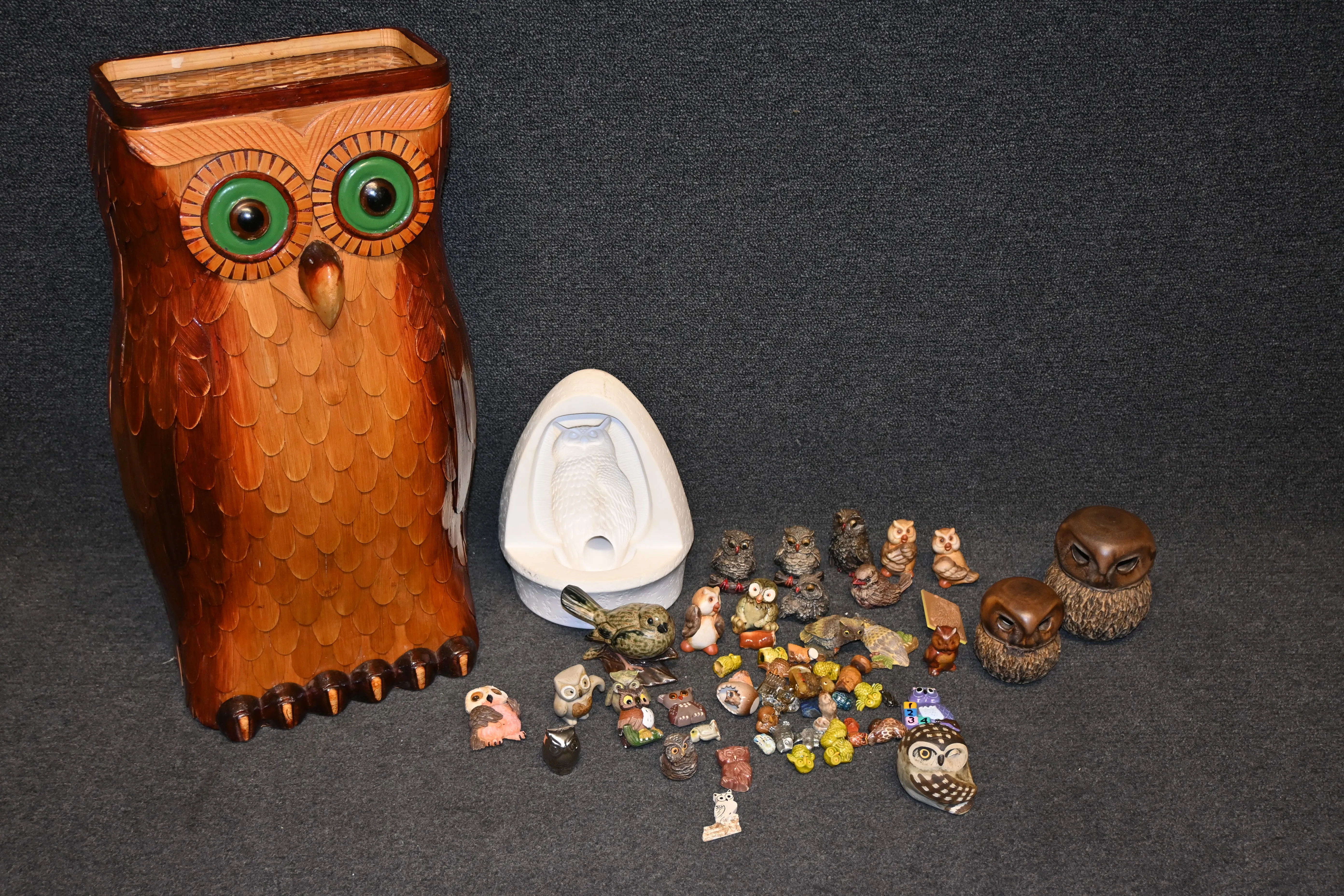 577. Parti diverse ugglefiguriner bl a Gustavsberg "E.L", korg