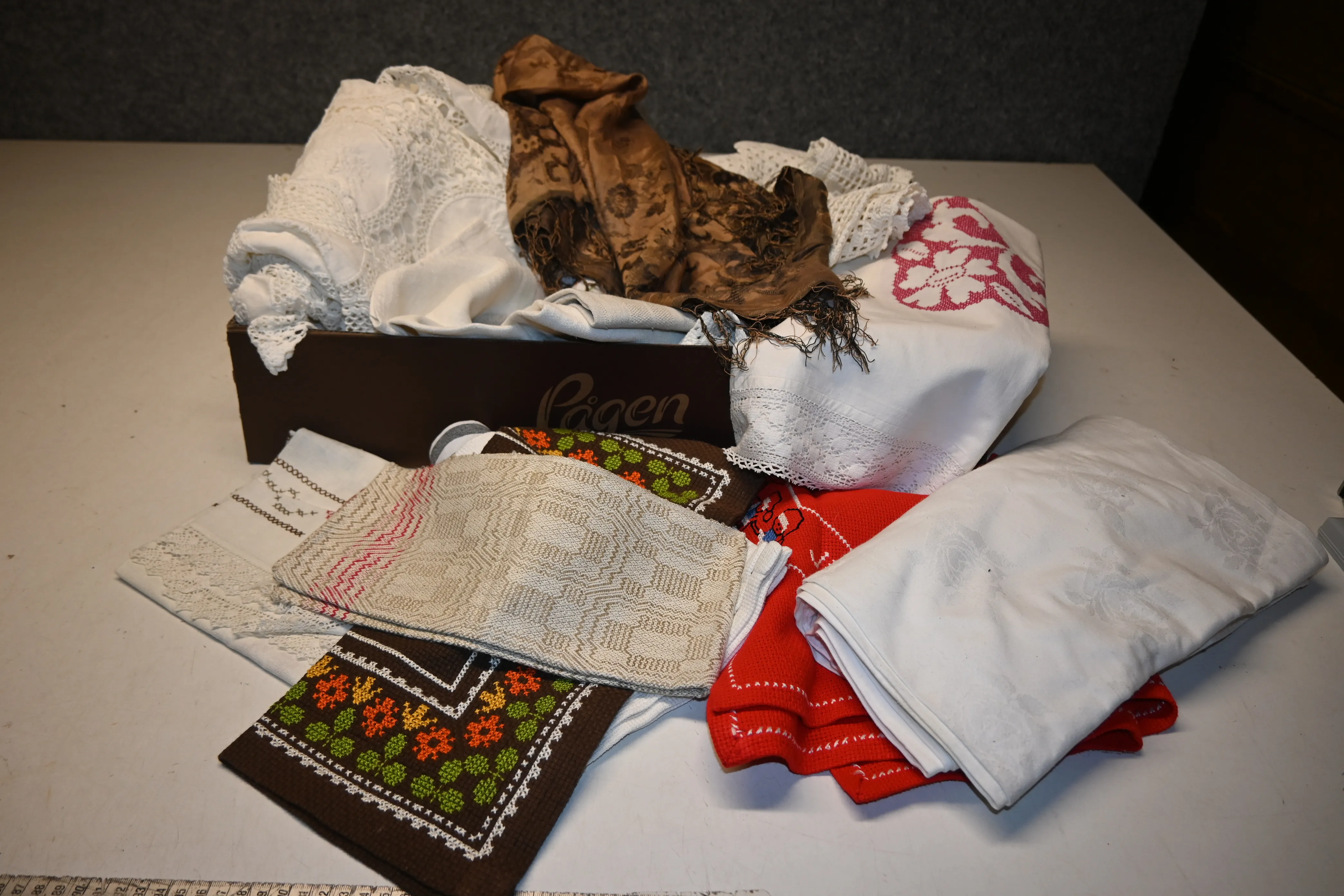 Parti dukar bl a virkat, broderat