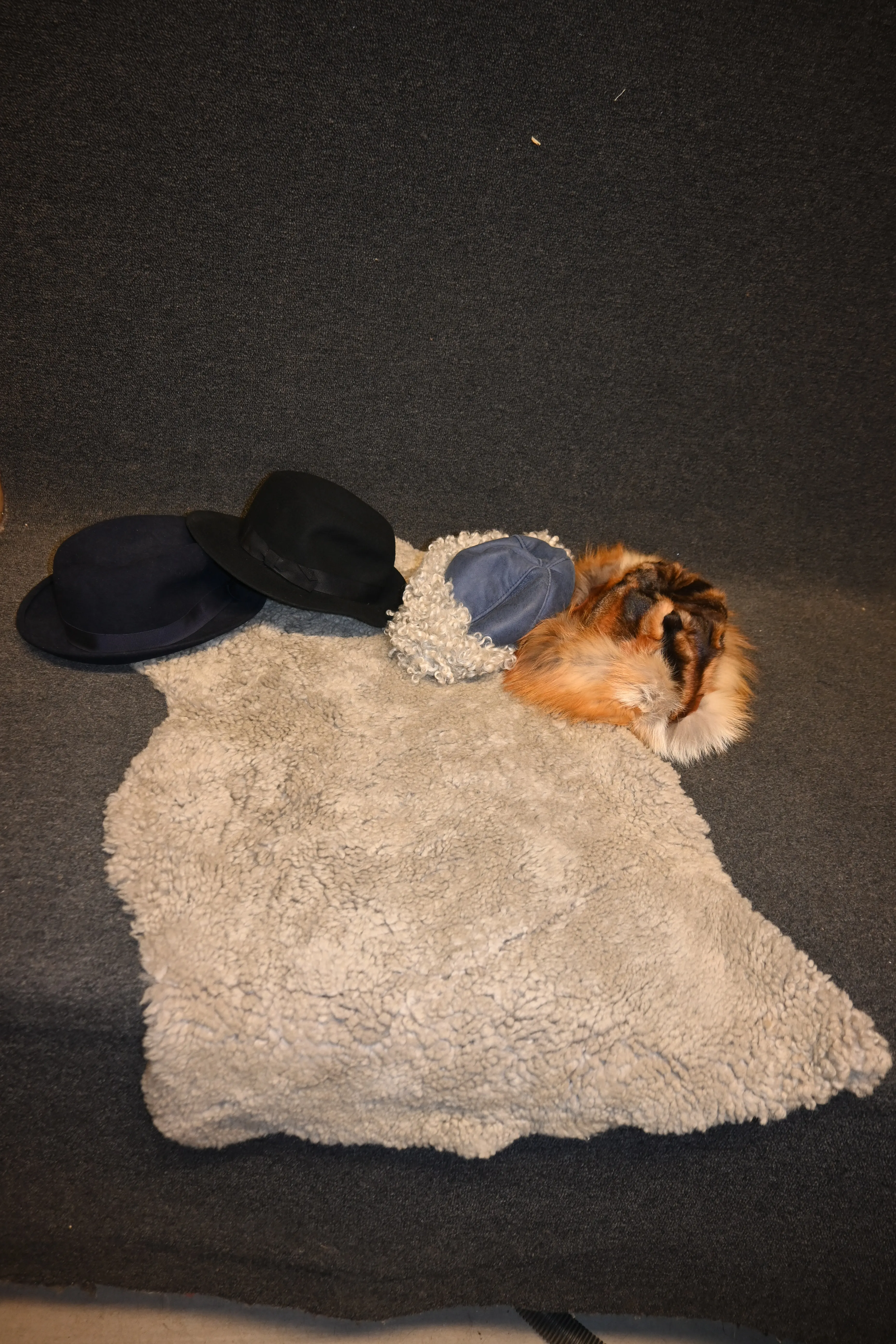Parti fårskinn, pälsmössa, hattar