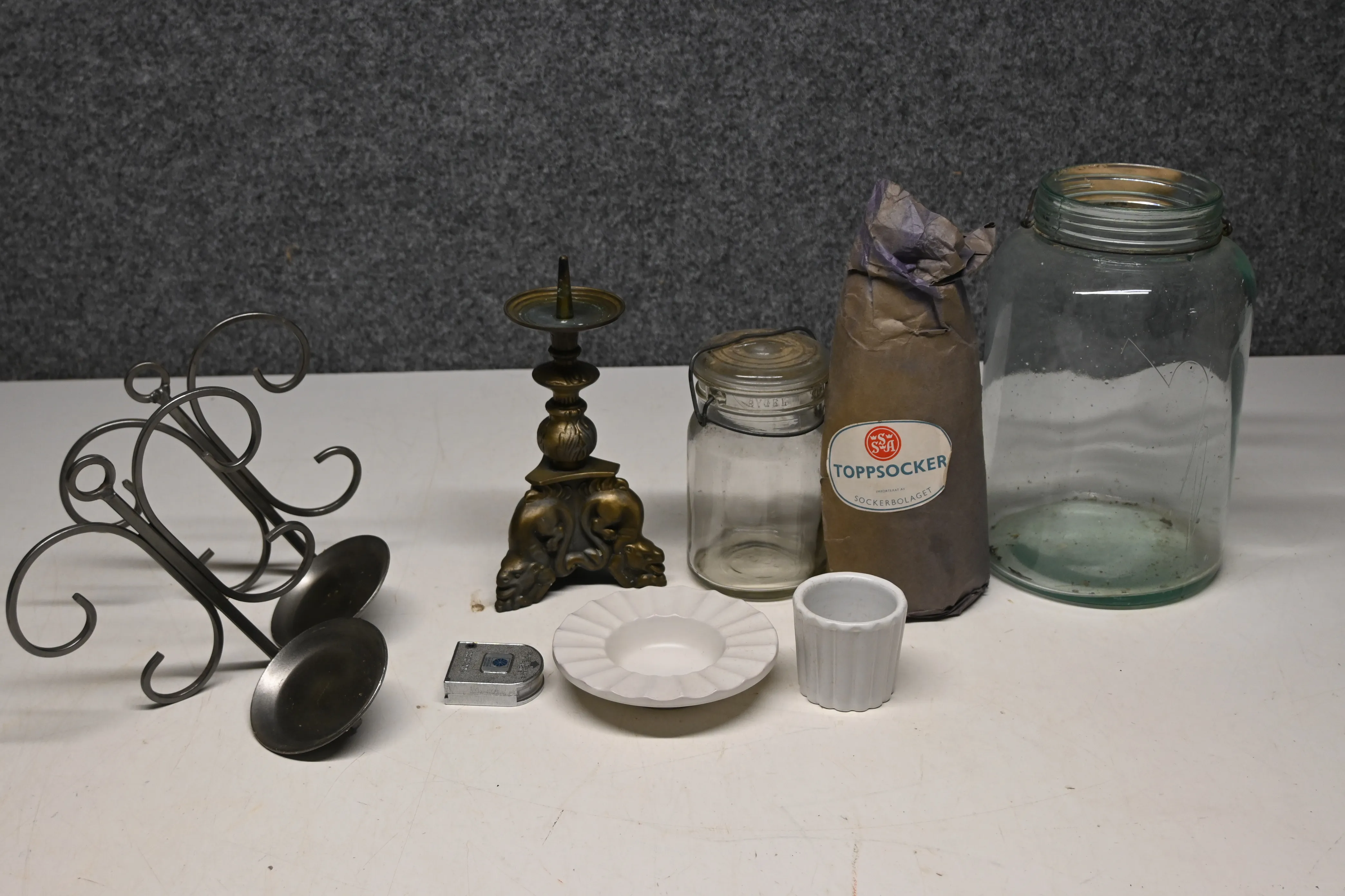 Parti glasburkar, toppsocker, ljusstakar, 2del nittsjö keramik