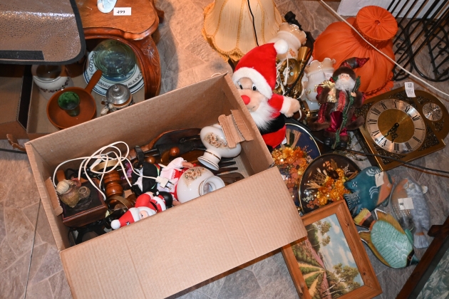 Parti glass, porslin ,lampor, väggklocka